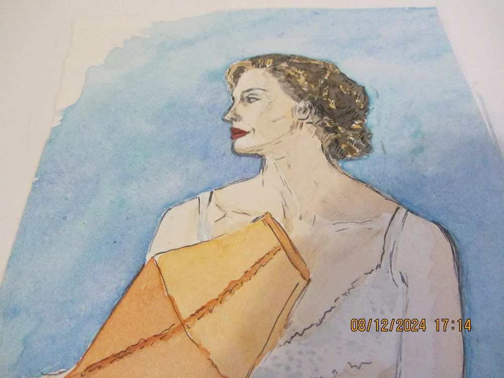 This beautiful painting is a stunning example of contemporary art, featuring a portrait of a woman with a fan. Measuring 6 inches by 9 inches, this medium-sized piece was produced using watercolor painting techniques. The painting is unframed, making it the perfect addition to any art collection. The piece is themed around fashion and portraits, with a focus on women. It was produced in 2000-2009 and is signed with the year of production, 1837. The painting is a great way to add a touch of elegance to any room, and its production technique ensures that it will be a unique piece for years to come.