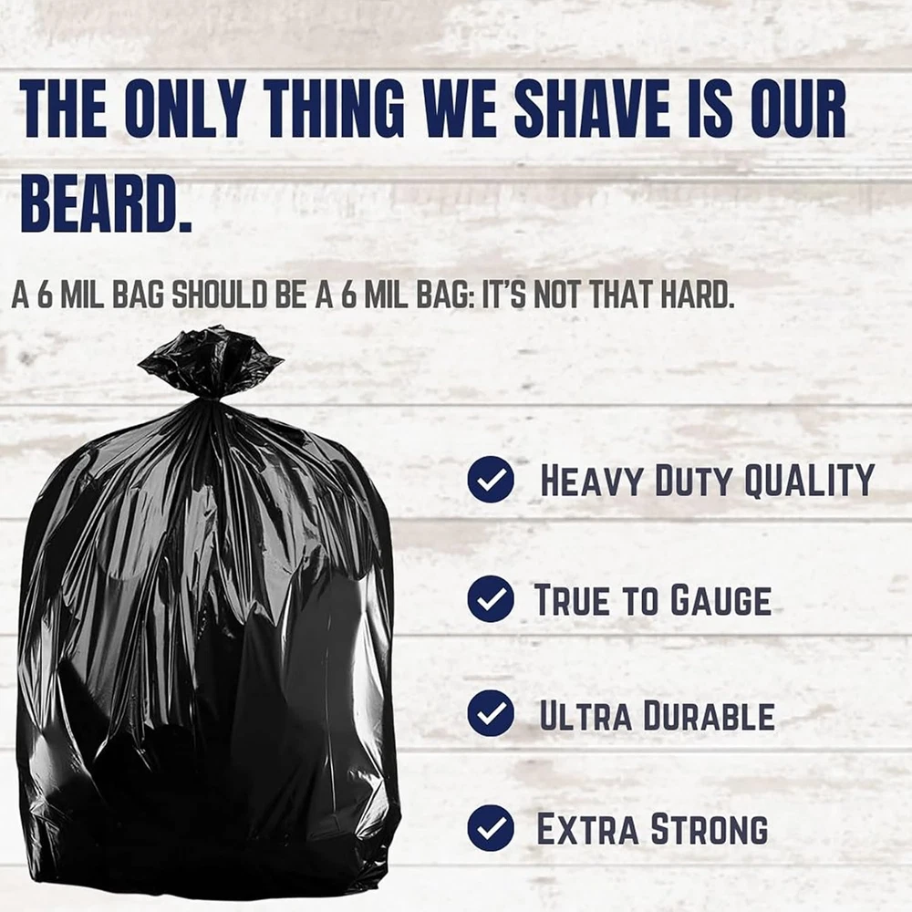 Store New Arrivals Add to Favorite View Feedback Contact CON55X6 Contractor Trash Bags 55-60 Gallon │ 6.0 Mil │ Black Heavy Duty Garbage Bag │ 36” X 58” (25 Count) Description Item model number CON55X6 Unit Count 25.0 Count Capacity 60 Gallons Number of Items 25 Color Black Scent Unscented Product Dimensions 10 x 2 x 2.7 inches; 21.3 Pounds Material Plastic Country of Origin China Material Feature Heavy Duty Recommended Uses For Product Can Liners Is Discontinued By Manufacturer No Item Form Bag PUNCTURE AND TEAR RESISTANT - Provides maximum resistance to punctures and tears. Designed to hold the toughest and most rough objects around. Including sharp and irregular shaped items such as glass, nails, metal, wood and cardboard. SUPER THICK 6.0 MIL - Thickness of bag is 6.0 Mil, ensuring it’s strong enough to withstand extremely heavy loads like bricks, sheetrock, framing, broken glass and more. EXTRA HEAVY DUTY - Made from industrial-strength low-density resins (thicker material). It is flexible and leak-proof, guaranteeing a mess-free clean up. Proudly made in the USA MULTI USE - Great for construction debris, demolitions, heavy duty clean-ups, yard work, garage clean-up, workshop or heavy-duty storage. Popular among contractors and heavy duty commercial or residential use. SIZE - 55-60 Gallon black contractor bag, 36”W x 58”H. Use for outdoor drum can liners or have them stand upright on their own with its bottom flat seal. These black garbage bags come folded (25 Count). Contractor bags are a breed apart, and this one goes even further, offering extreme strength. More than a match for any construction site, these 55 - 60 gallon black bags can take a beating and come back for more. This bag is as heavy duty as they come. The 6 mil thickness of low-density resin can expand and twist without tearing, no matter what. It will hold up against nails, shattered glass, lumber, and bricks without the risk of punctures. The gusset seal gives it a comfortable fit in large drum cans, but this bag also performs well freestanding. Buy contractor bags in bulk and save BIG. Made in the USA to the very highest quality standards. ABOUT US We offer the best prices around on high quality products. Our E-store includes media such as books, movies, music and games while offering electronics, toys, sporting apparel, clothing, tools, general home, garden items and more. SHIPPING We are always working hard to ensure your package arrives as soon as possible. Please understand that some factors like weather, high postal traffic, and the performance of shipping companies are outside of our control. We offer free shipping to the lower 48 states and ship within 2 business days of payment, usually sooner. We do not accept P.O. Boxes. Please provide a physical address. For shipping outside of the continental USA, we only use eBay's Global Shipping Program.The item is shipped to KY and then sent to the rest of the world. International customers are responsible for all duties and taxes. Continue to check out in order to calculate costs for shipping the item to your country. Messages regarding eBay's Global Shipping Program MUST be directed at eBay EXCLUSIVELY. RETURNS We offer a 30-Day Return Policy on items which you are not completely satisfied with. You have the option for a full-refund or an exchange of the item. No returns are available on items shipped outside of the USA. PAYMENT We accept PayPal. CONTACT US This page content is yet to come Please ad us to your favorite seller and visit again later Thank You CUSTOMER SATISFACTION We try our very best to make sure every customer is completely satisfied. If there's a problem, message us! We're happy to help. WE ACCEPT Copyright © 2021 AutoDS. | All Rights Reserved