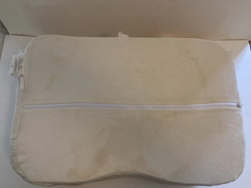 My husband's old CONTOUR PRODUCTS 5 Inch CPAP Pillow Memory Foam Washable Cover Used He tried it for a while with the CPAP and then went back to a regular pillow. Pillow itself is in good condition. Cover is off white with some yellowed stains that did not come out despite soaking the pillow cover in oxy clean and then sending through washing machine. See photos for details.