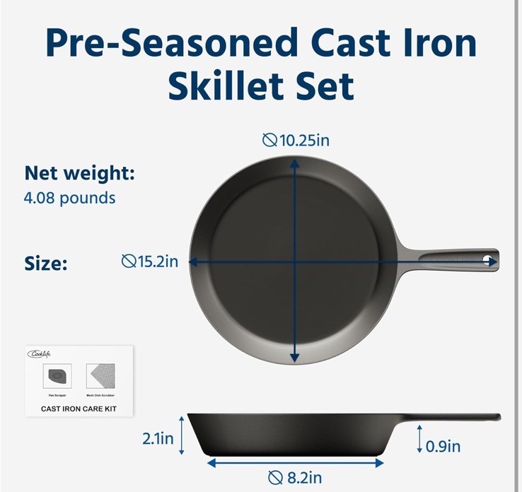 Smoother and Easier to Season: COOKLIFE cast iron skillet is crafted with a fine polishing technique, making its surface smoother than traditional cast iron. This allows seasoning oils to spread more evenly and cover the surface better. Polished cast iron skillet's unique design ensures that your skillet stays in excellent condition with the right care, forms a seasoning layer faster, and minimizes food sticking, providing reliable performance with minimal maintenance. Lighter and Easier to Handle: COOKLIFE 10 inch cast iron skillets weigh just 4.2 pounds, making it 30% lighter than traditional cast iron skillets. The lighter weight makes the skillet easier to handle, offering a more comfortable cooking experience. COOKLIFE's research found that even after reducing the weight by 30%, it does not lose the delicious flavor and superior performance of cast iron. More Convenient and Easier to Clean: All Cooklife smooth cast iron skillets come pre-seasoned, saving you the lengthy initial seasoning process. Due to Cooklife's fine polishing technique, the skillet surface is smoother and easier to clean than traditional cast iron, with a faster-forming seasoning layer. Of course, following traditional seasoning methods can further enhance the skillet's performance and long-term seasoning effects.