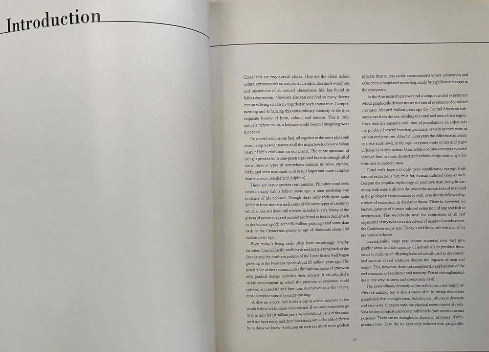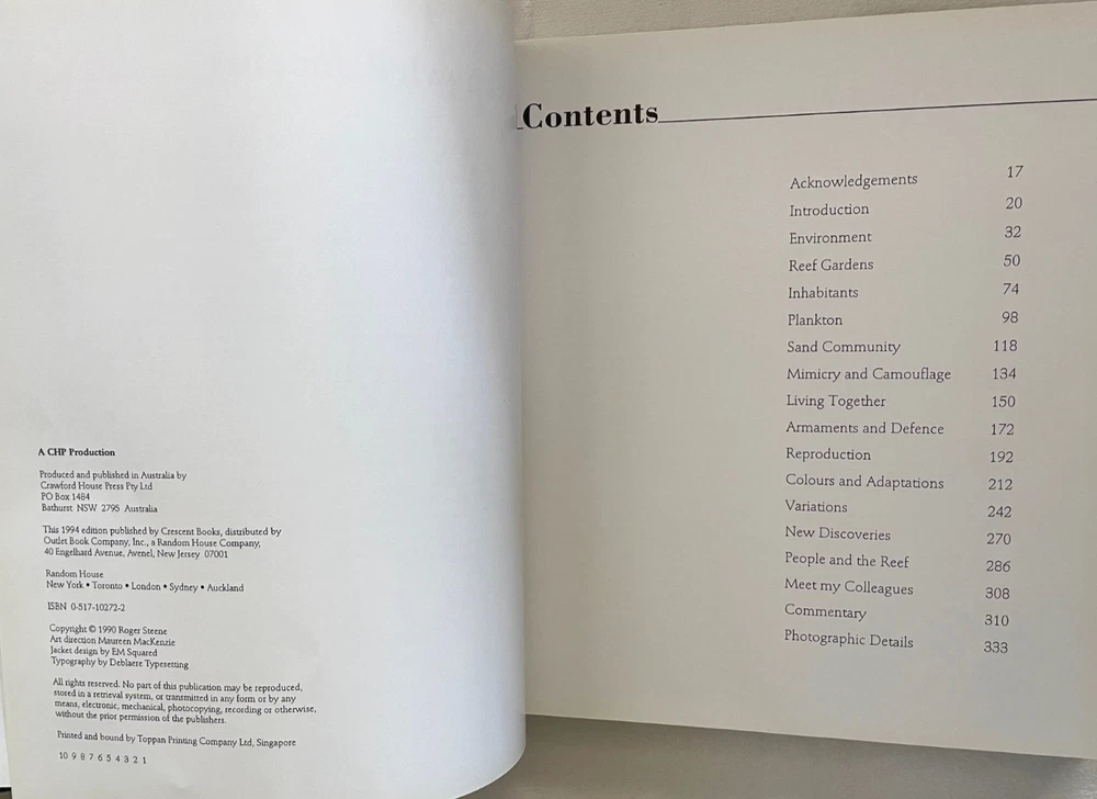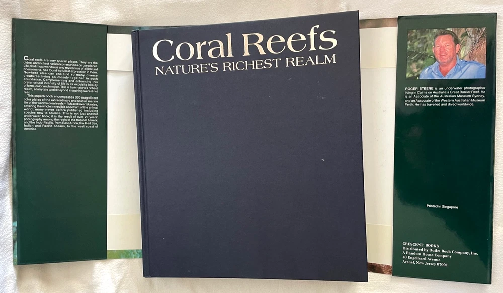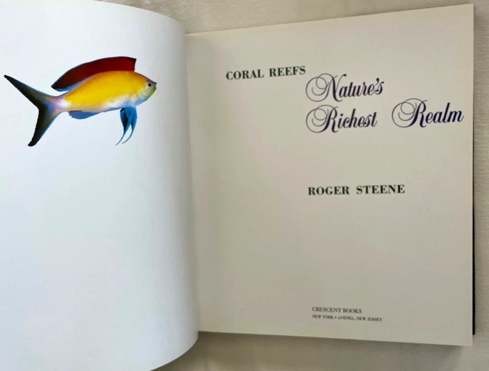Vintage CORAL REEFS (Nature's Richest Realm) Hardcover Collector's BOOK with Dust Jacket. Coral reefs are the oldest and richest natural communities on our planet. This book captures the intensity of life beneath the sea in its exquisite beauty of form, color and motion - a fairytale world beyond imagination. This superb book encompasses 300 magnificent color plates of the extraordinary & unique marine life of the world's coral reefs - fish and invertebrates, covering the whole incredible spectrum of the animal world. Not just another underwater book - it is the result of over 20 years' photography among the reefs of the tropical Atlantic and the Indo-Pacific, from East Africa, the Red Sea, Indian & Pacific oceans, to the west coast of America. Approx. size of book 10.25" x 11.25". Wonderful, decorative "coffee table" book & conversation starter. Shipping weight is 6 pounds. NOTE: Book originally sold at $65.00. As a store display book, it is offered at a considerable discount. Excellent gift for the avid book collector, traveler and aficionado of all sea life - friend or family member - any occasion: holiday, birthday, Easter, Christmas, vacation memories, anniversary, wedding, retirement, etc.