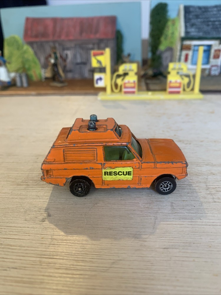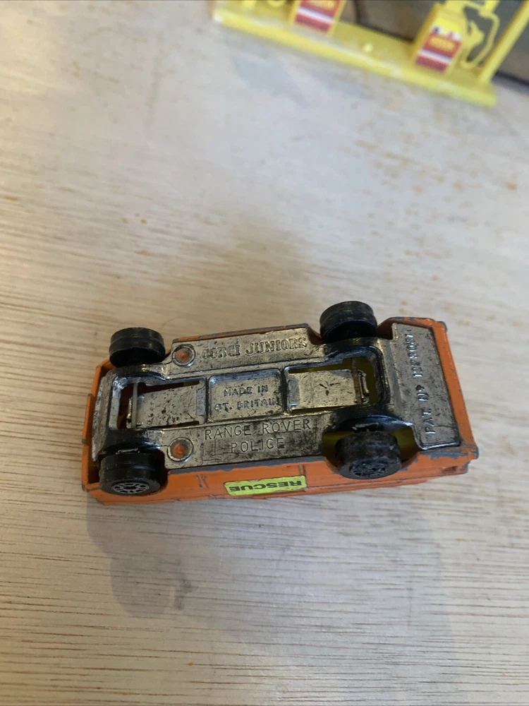 This is a Corgi Juniors diecast car featuring a Range Rover model in orange colour. The vehicle is part of the Police Rescue Team series, manufactured in the United Kingdom. This vintage toy is a collectible item under the "Toys & Games" and "Diecast & Vehicles" categories, ideal for car enthusiasts and collectors of vintage miniature vehicles. The Corgi brand is known for producing high-quality diecast cars, making this Range Rover a desirable addition to any collection.