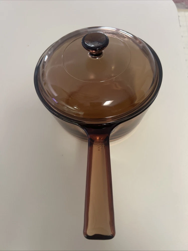 Elevate your cooking experience with the timeless elegance of the CORNING WARE VISIONS Amber Cookware set. This charming two-piece collection features a 1.5-liter pot with a durable Pyrex lid, perfect for a variety of culinary tasks from simmering sauces to boiling grains. The amber glass-ceramic construction not only adds a touch of retro charm but also offers a glossy finish that's as stylish as it is functional. Crafted in the United States during the vibrant era of the 1980s, this set embodies the quality and design excellence synonymous with the Corning brand. Its solid pattern and round shape complement any kitchen decor, while the stovetop, oven, dishwasher, and microwave-safe features ensure versatile usage for all occasions. Whether you're a seasoned chef or a home cook, this saucepan with lid is a must-have addition to your cookware collection.