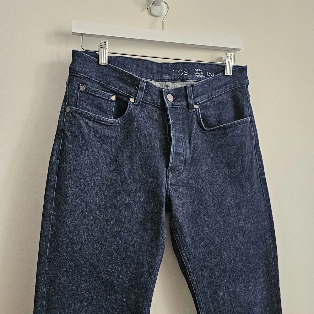 In good preloved condition COS Blue Jeans Sz 32 Skinny Fit Tapered Leg Mid Rise Button Closure Measurements with garment laid flat Waist: cm Hips: cm Length: cm Inseam: cm Rise: cm Thank you for embracing pre-loved and re-sold fashion. Purchasing this item continues its narrative and helps reduce textile waste. Every small step counts, and you're part of a larger movement working towards a more sustainable future. Buy 2+ clothing items from my store to combine shipping. (Australia only). Reach out if you need help with combining your order. All items are sent with tracking using Australia Post.