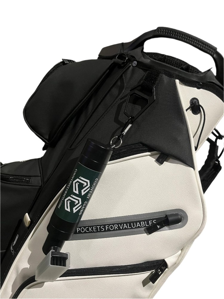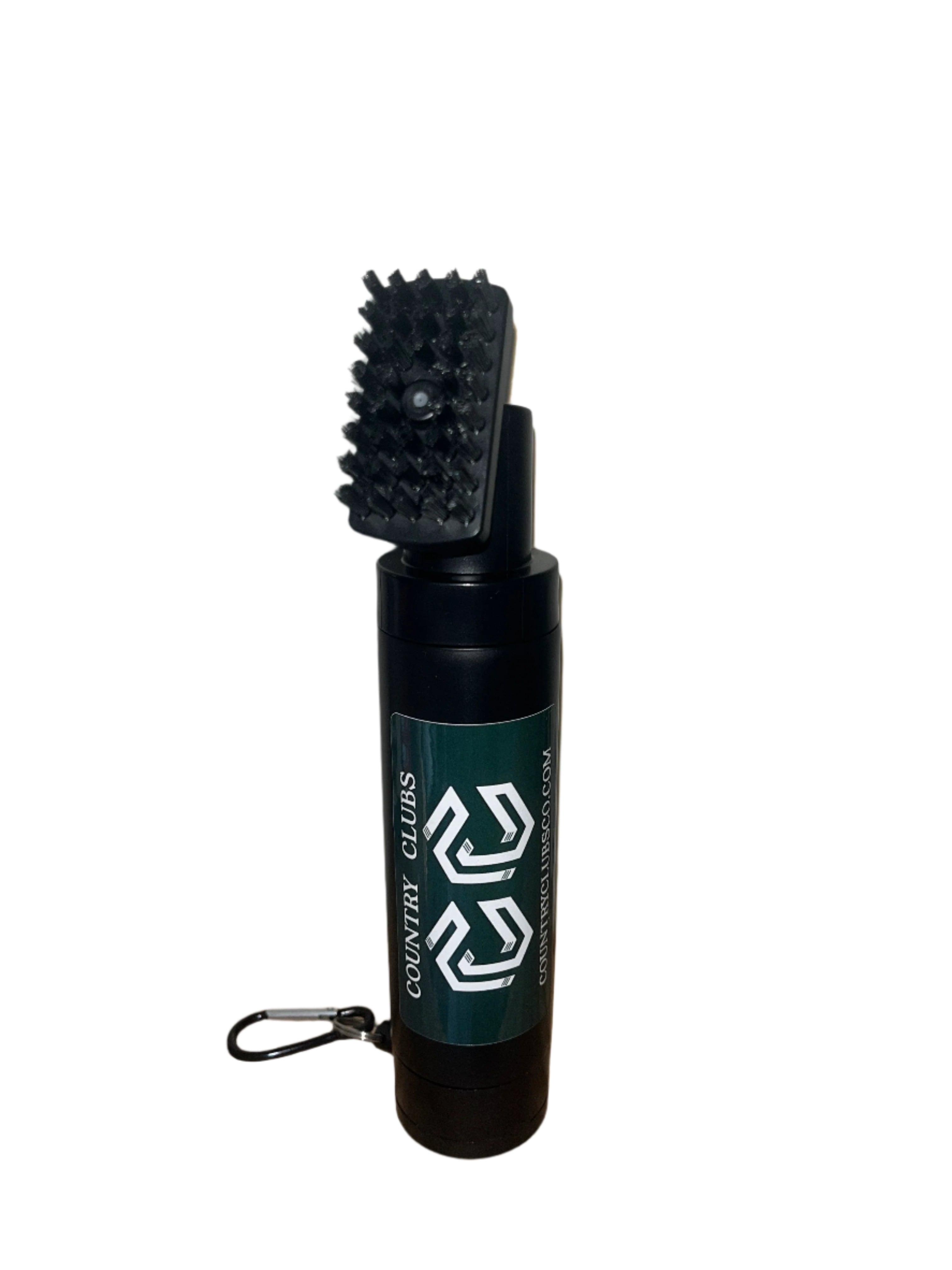 Precision Cleaning for Peak Performance Available in Black and White. Keep your golf clubs in pristine condition with the ULTIMATE Golf Water Brush Cleaner, designed for effortless on-the-go cleaning! This innovative brush features high-quality nylon bristles to remove dirt, grass, and debris while being gentle on your clubface. What sets this brush apart is its built-in refillable water reservoir with a press-to-release mechanism, allowing you to control the water flow for a thorough and efficient cleaning. The durable design ensures long-lasting performance, making it an essential tool for every golfer. A built-in retractable cord of easy handling around the bag for quick cleaning and a carabiner clip for grab-and-go use.
