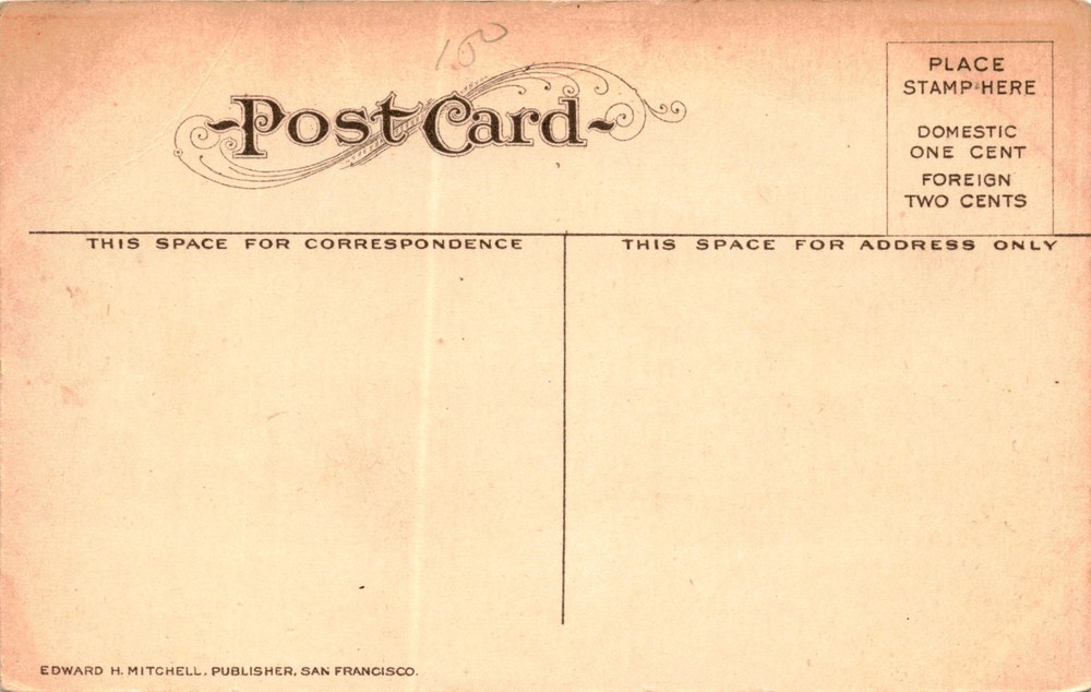 MAKE AN OFFER. THE MORE YOU BUY THE BETTER DEAL I WILL ACCEPT The front of the postcard features an image of the Court House in Santa Ana, California. The publisher of the postcard is Edward H. Mitchell from San Francisco. The back of the postcard has space for correspondence, with instructions for placing a stamp for domestic or foreign postage. The space for the address is separate from the correspondence section.