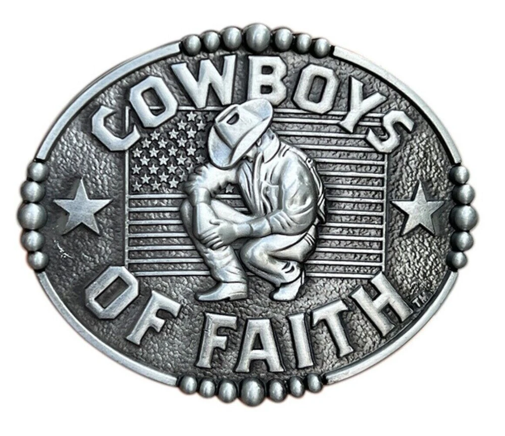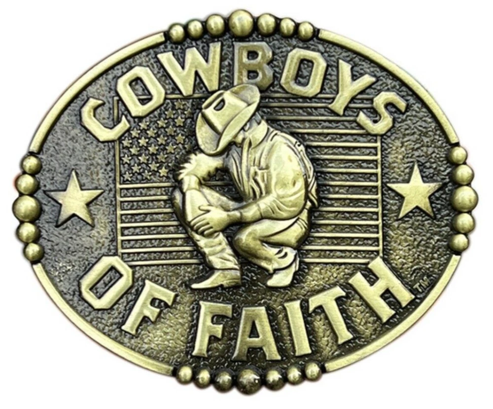 COWBOYS OF FAITH Belt Buckle Western Mens Vintage Style Floral Cowboy Rodeo Wear