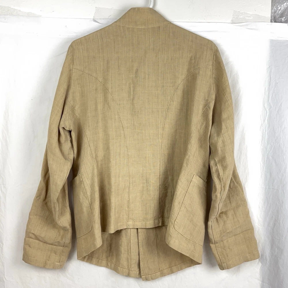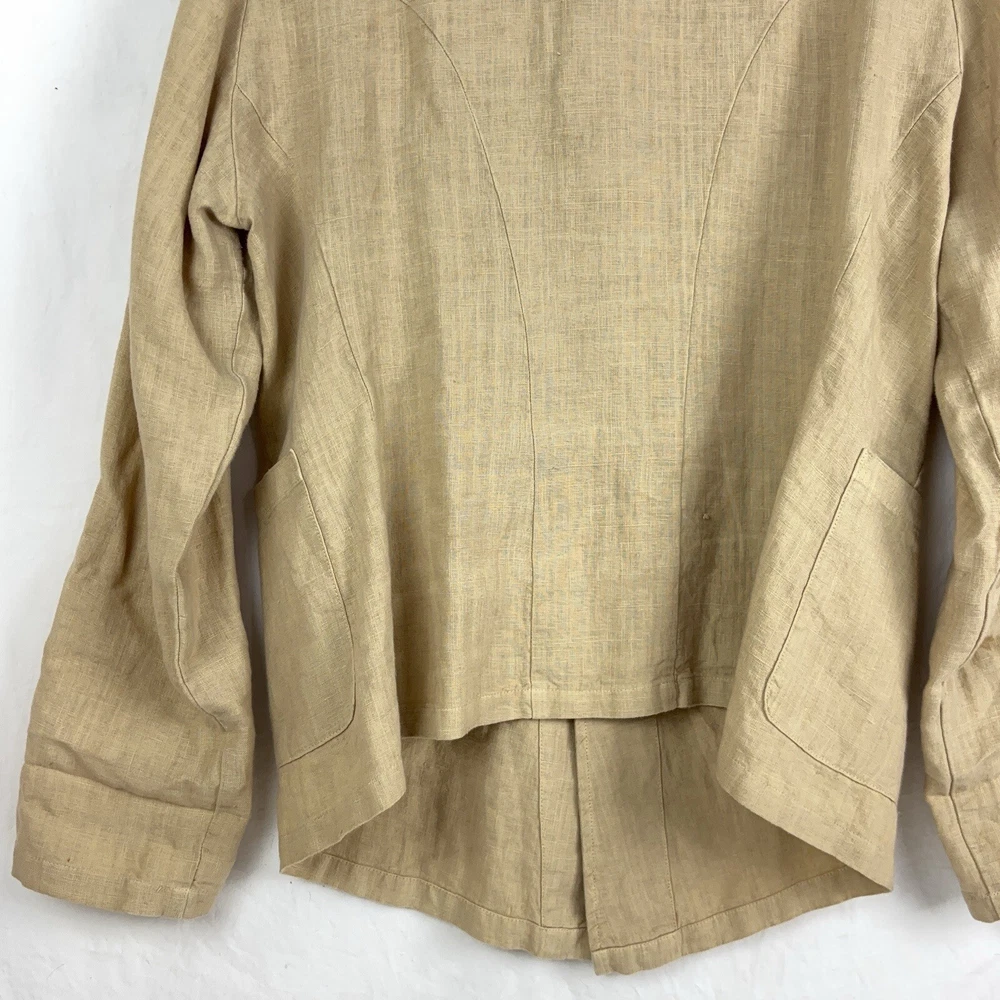 CP Shades Womens Beige Oversized Linen Shirt Jacket Long Sleeve Lagenlook Small