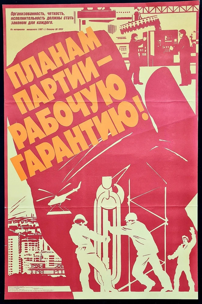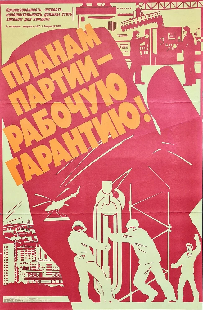 Original slogan on the poster: ПЛАНАМ ПАРТИИ - РАБОЧУЮ ГАРАНТИЮ! ОРГАНИЗОВАННОСТЬ, ЧЕТКОСТЬ, ИСПОЛНИТЕЛЬНОСТЬ ДОЛЖНЫ СТАТЬ ЗАКОНОМ ДЛЯ КАЖДОГО. ИЗ МАТЕРИАЛОВ ЯНВАРСКОГО (1987 Г.) ПЛЕНУМА ЦК КПСС Literally English translation of the main: FOR THE PLANS OF PARTY - WORKING GUARANTY! ORGANIZATION, CLEARNESS, PERFORMANCE SHOULD BECOME A LAW FOR EVERYONE. FROM THE MATERIALS OF THE JANUARY (1987) PLENUM OF THE CENTRAL COMMITTEE OF THE CPSU POSTER ARTIST: BELSKIY L. & POTAPOV V. PRINT YEAR: 1987 SUBJECT: INDUSTRIAL PLANS BY CPSU LANGUAGE: RUSSIAN PRINT RUN: 110.000 PUBLISHED BY: "PLAKAT", MOSCOW SIZE: IN: 22 ½ x 34 ¼ = CM: 57 x 87 CONDITION: FLAT, GOOD The poster was two times folded and minor tape repairs on the reverse, but the overall condition for its age is good and it looks very impressive alive. Before your bid please consider the poster condition from attached pictures and text description, if you still need more information please feel free to require additional pictures or video, it would be my pleasure to assist you with any questions regarding this auction. Shipping rolled in a hard plastic tube. The artwork was designed by famous duet of Soviet poster artists: BELSKIY LEONID ISAAKOVICH (1947 -) - Soviet graphic artist, poster artist. Member of the Union of Artists of the USSR. Born in Zhitomir (Ukraine). Graduated from the Moscow State Art Institute named after V. I. Surikov. Participant of republican, all-Union and foreign poster exhibitions. Collaborated with the publishing house "Plakat". He worked in collaboration with the artist POTAPOV VLADIMIR MIKHAILOVICH (1946 - 1996) - Soviet poster artist, graphic artist, painter. Member of the Union of Artists of the USSR. Born in 1946 in the town of Shchelkovo, Moscow Region. Graduated from the Moscow Art School in Memory of 1905; studied under G. Dubinchik, I. Ovsiyan, L. A. Shitov. Graduated from the poster workshop of the Moscow State Art Institute named after V.I.Surikov (1975), teachers - N.A.Ponomarev and O.M.Savostyuk. Participant of city, republican and all-union art exhibitions. He was engaged in painting, painted urban and rural landscapes. He worked on social and political posters. He often worked in collaboration with the artist L. I. Belsky. Collaborated with the publishing house "Plakat" and the creative-production association "Agitplakat". Participant of the International Competition "Poster for the Olympics-80" (1978). For the poster "Moscow - the capital of the XXII Olympiad" he was awarded a diploma from the "Plakat" publishing house. www.facebook.com/sovietartposters Listing and template services provided by inkFrog