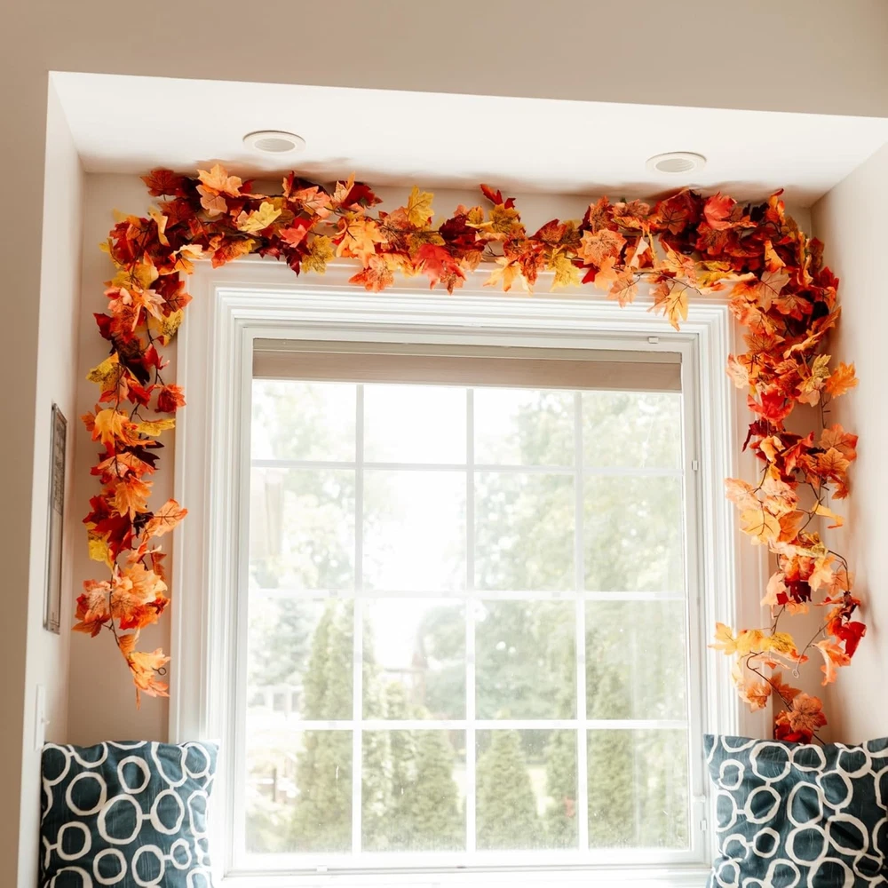 CQURE 6 Pack Fall Leaf Garland, 5.9Ft Artificial Maple Leaves 35.4FT, Orange LuxeFusion Product Description Features SIZE:Our artificial maple leaf garlands made from Silk,Plastic,High Quality,Each garland plants 5.9 FT Long,total 35.4 Ft,Including 6 pieces. SUITABLE OCCASION:The Fall Leaves Garland can decorate weddings,festivals,parties,home decorations,gardens,fencing,floral tributes,sheds Swing frame,air-conditioning pipes,water pipes,door frame,exposed wires,stairs,led lights,etc.Especially suitable for Christmas and Halloween decorations CRAFTSMANSHIP: Realistic Fall Leaves Garland.The color of the maple leaves range from dark green to vibrant orange, look like the real fallen leaves.The orange, yellow, and red and more color maple leaves make for a great blend of colors to warm up any room.Not fading,UV resistant , not falling off, good wear resistance,Non-flammable. DURABLE and REUSABLE: Sturdy and texture clear ivy leaf are made of fabric, stems are made of plastic, It's soft, and easily bent or cut down as you need, and adapt to all kinds of weather。Hanging ivy garland does not require any sort of special care. SERVICE:CQURE stands behind all of its products with super customer service. If for any reason you are not satisfied in autumn garland, please don't hesitate to retrieve us for help. Product Details Number of Light Sources: 6 Is Artificial Garland: Yes Is Lighted: No Size: 35.4FT Shape: Round Manufacturer: CQURE Package Dimensions: 12.17 x 5.39 x 5.28 inches Item Weight: 1.06 pounds Country of Origin: China Item model number: GD-FYSQ-6 Brand: CQURE Color: Orange Material: Silk Item Length: 70.8 Inches Plant or Animal Product Type: Maple Free Shipping All orders ship free and fast to your doorstep. Easy Returns Satisfaction guaranteed. 30-day returns, no questions asked. 24/7 Support Contact us anytime; we’re here to help, day or night. Brought to you by LuxeFusion – Quality you can trust.