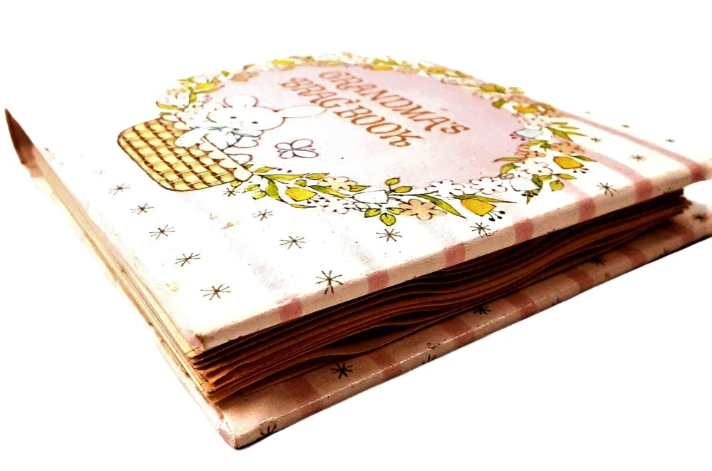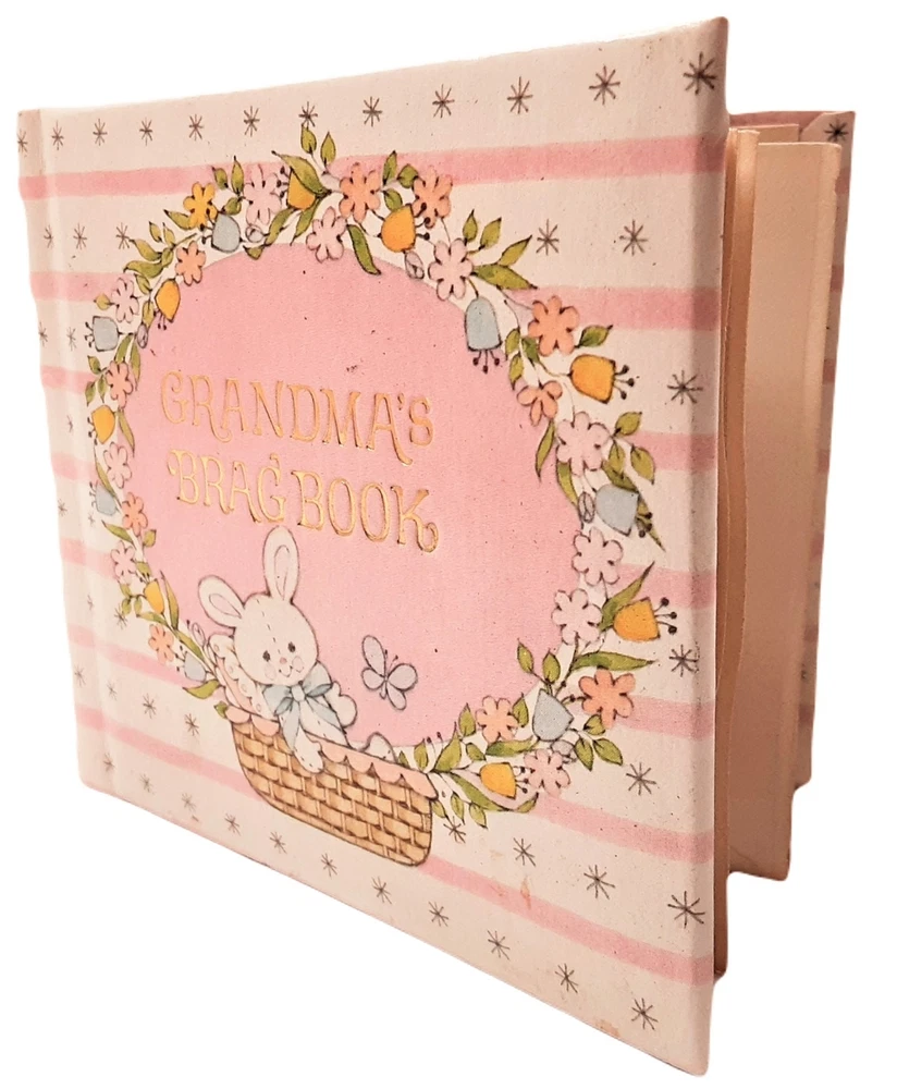 Vintage Grandma's Brag Book Small Photo Album C.R. Gibson Co. in Connecticut Vintage item circa 1960's/1970's Item is new and has never been used but does not come with tags or packaging Has 10 double sided plastic sleeves holding a total of 20 pictures Each sleeve measures approximately 3 1/2" x 3 1/2"; album measures 4 1/2" x 3 3/4" Compact size makes it perfect for carrying in a purse Some small areas of discoloration on cover and back; slight warping of interior pages Overall great condition with beautiful colors, crisp clean graphics, and a charming design Makes a great Mother's Day gift!
