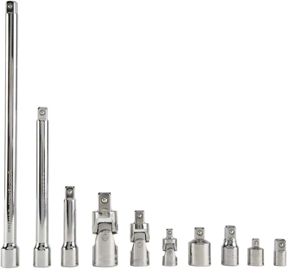 CRAFTSMAN Socket Extension Set/Socket Adapter Set, 10-Piece CMMT42351 Description The CRAFTSMAN Socket Extension Set / Socket Adapter Set, 10-Piece CMMT42351 is a versatile and durable tool set designed to give you greater reach and flexibility when working in tight or hard-to-access spaces. Made from high-quality, corrosion-resistant alloy steel with a polished chrome finish, these extensions and adapters provide long-lasting performance and easy cleaning. The set includes a variety of popular drive sizes to ensure compatibility with most ratchets, sockets, and power tools, making it ideal for automotive repairs, mechanical work, and general household projects. Precision-engineered for a secure fit, this 10-piece CRAFTSMAN set delivers reliable torque transfer and professional-grade performance for both DIY users and professional technicians.
