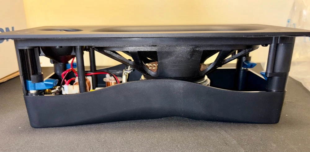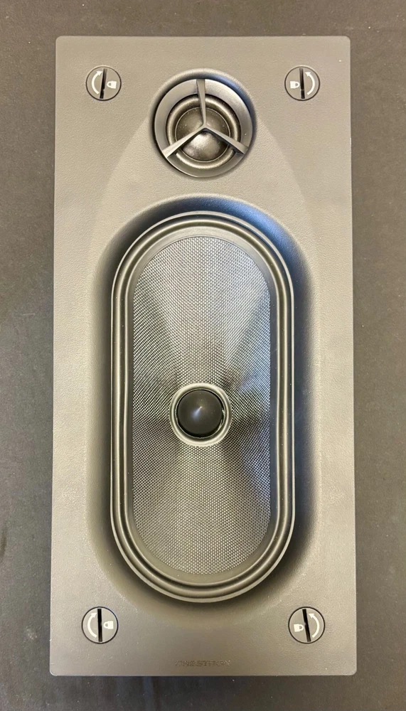 Reference 4 in. x 8 in. In-Wall Speaker, White Textured, Single Audiophile performance in-wall speaker to please the most ardent listener and the most demanding interior designer — with thoughtful features that simplify installation. Key Features Audiophile performance in-wall speaker 4 in. x 8 in. (102 mm x 203 mm) racetrack woven glass fiber woofer 1 in. (25 mm) Silk DPSD™ tweeter Turn and click Spring Lock™ mounting system 100 W (Program), and 200 W (Peak) power handling 60 Hz to 20 kHz (±3 dB) frequency response 8 Ohms nominal impedance
