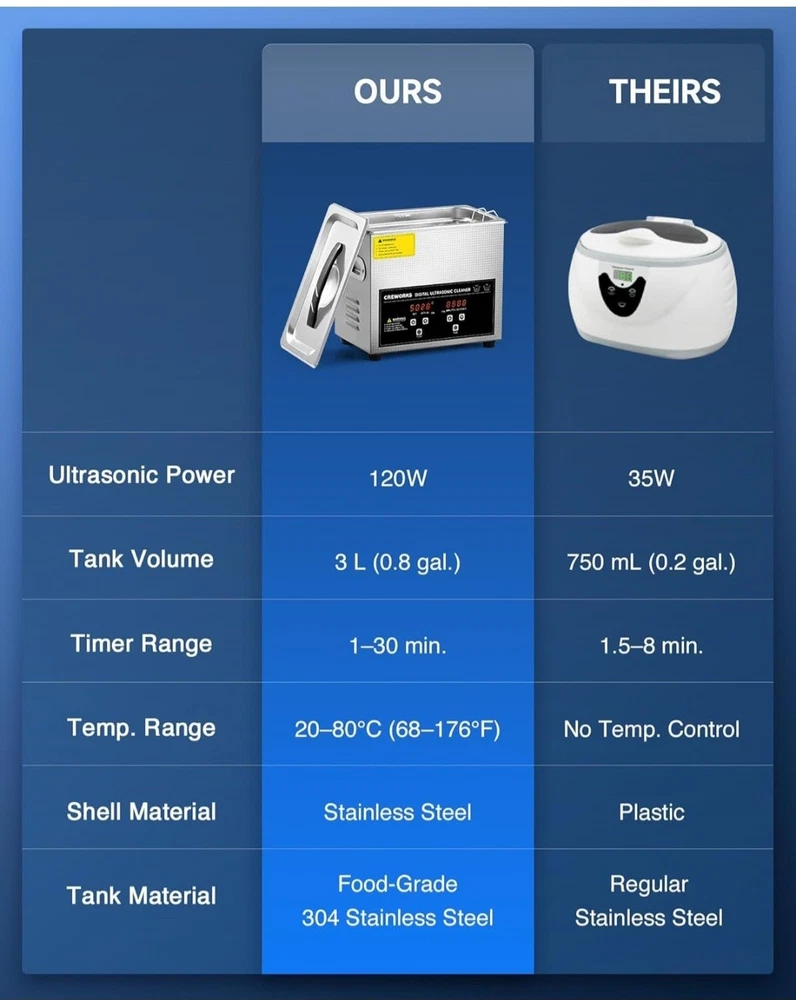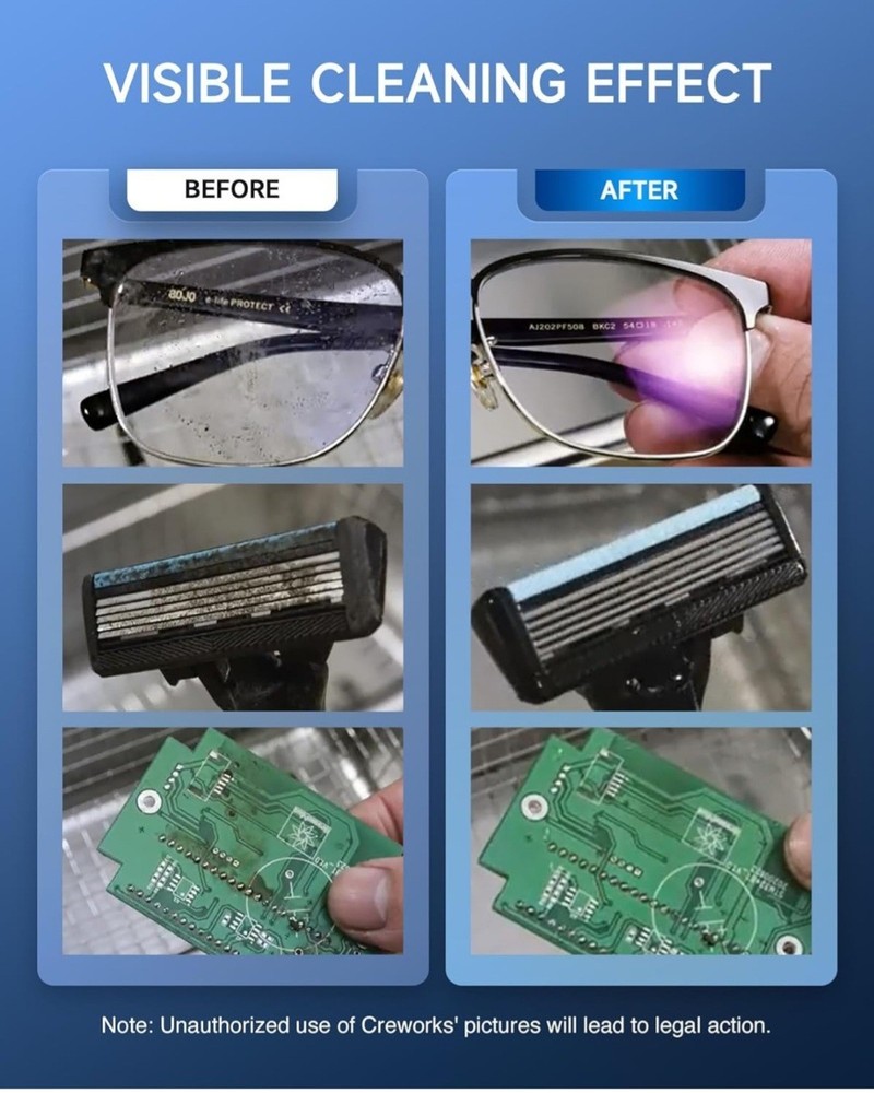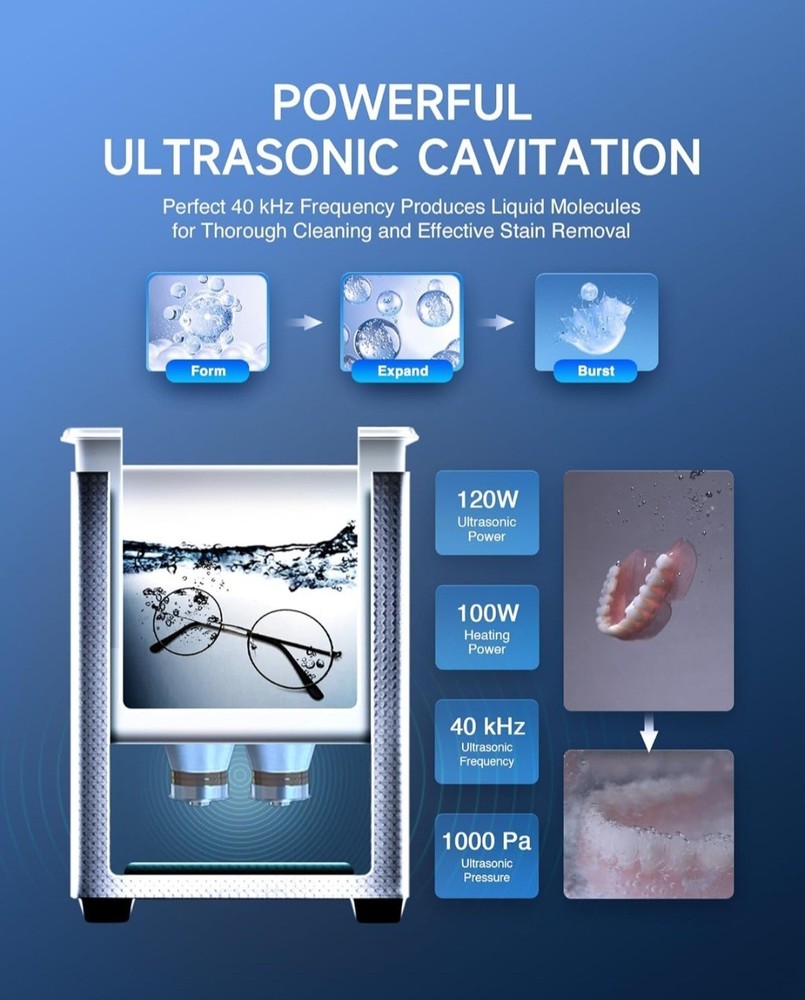 This ultrasonic cleaner is a game-changer! It effortlessly removes dirt and grime from jewelry, glasses, and even small tools. The heater and timer add convenience, while the stainless steel tank feels durable. Perfect for deep cleaning at home—super quiet and efficient. Highly recommend!