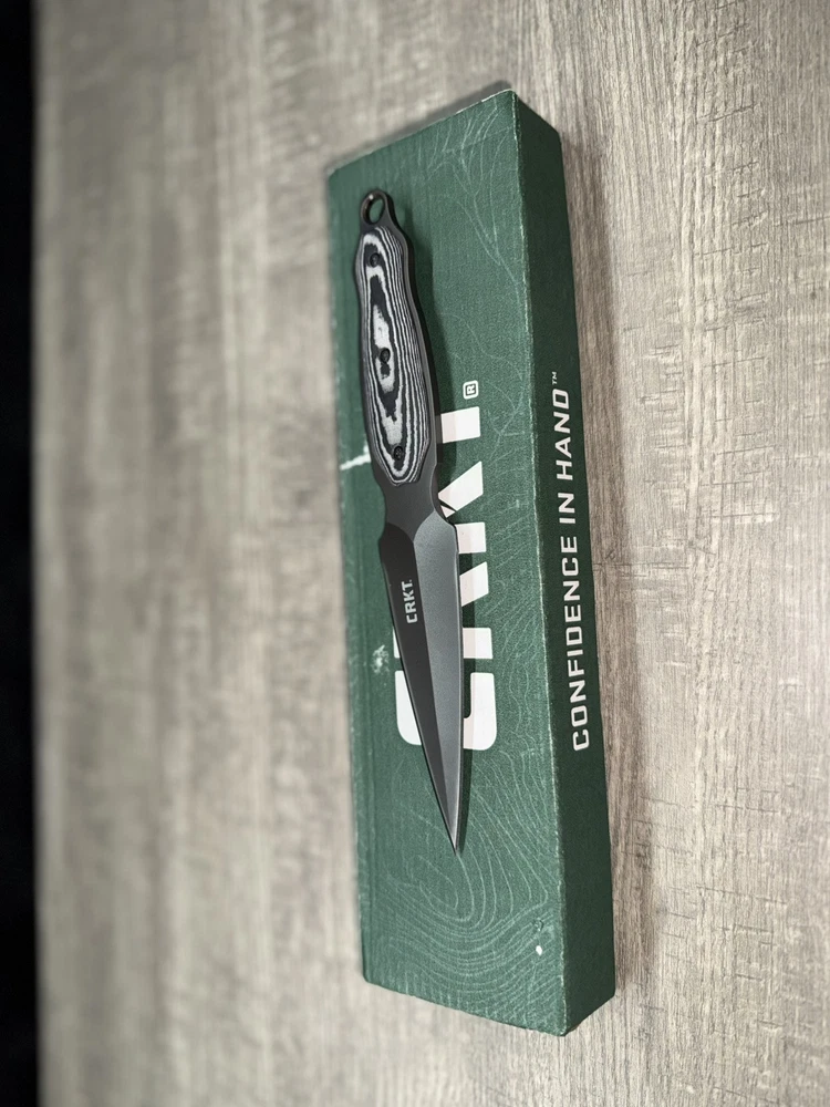 The CRKT Shrill Dagger Knife features a full tang construction with a spear point blade made of stainless steel. It has a blade length of 4 inches with a plain edge and a dual edge design. The handle is made of Micarta, and the knife includes a leather clip sheath with a lanyard hole. This versatile knife is suitable for hunting, everyday carry, combat, throwing, boot, and survival purposes, and is designed for ambidextrous use.