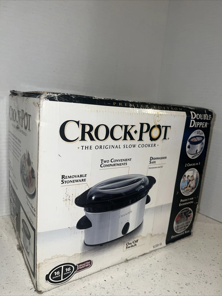 New never been used. Box just has wear and tear throughout time. Stainless steel slow cooker ideal for parties.