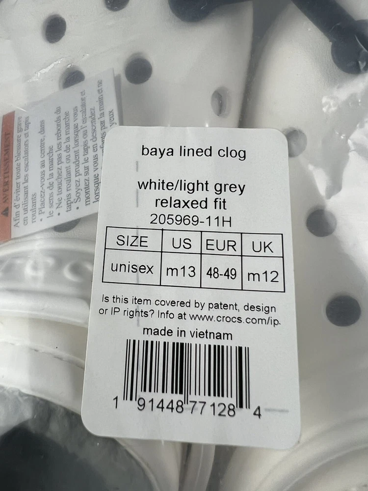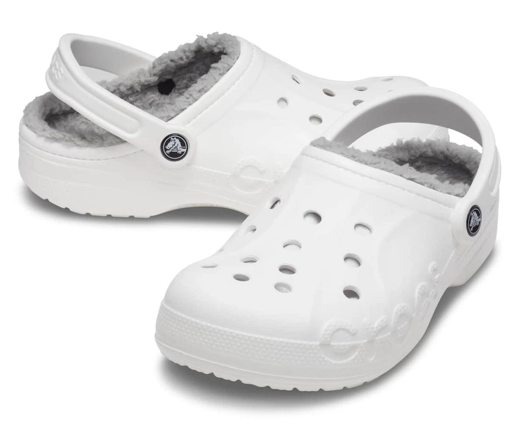 CROCS 205969-11H Men's Baya Lined Clogs Medium White/Light Grey Size 12