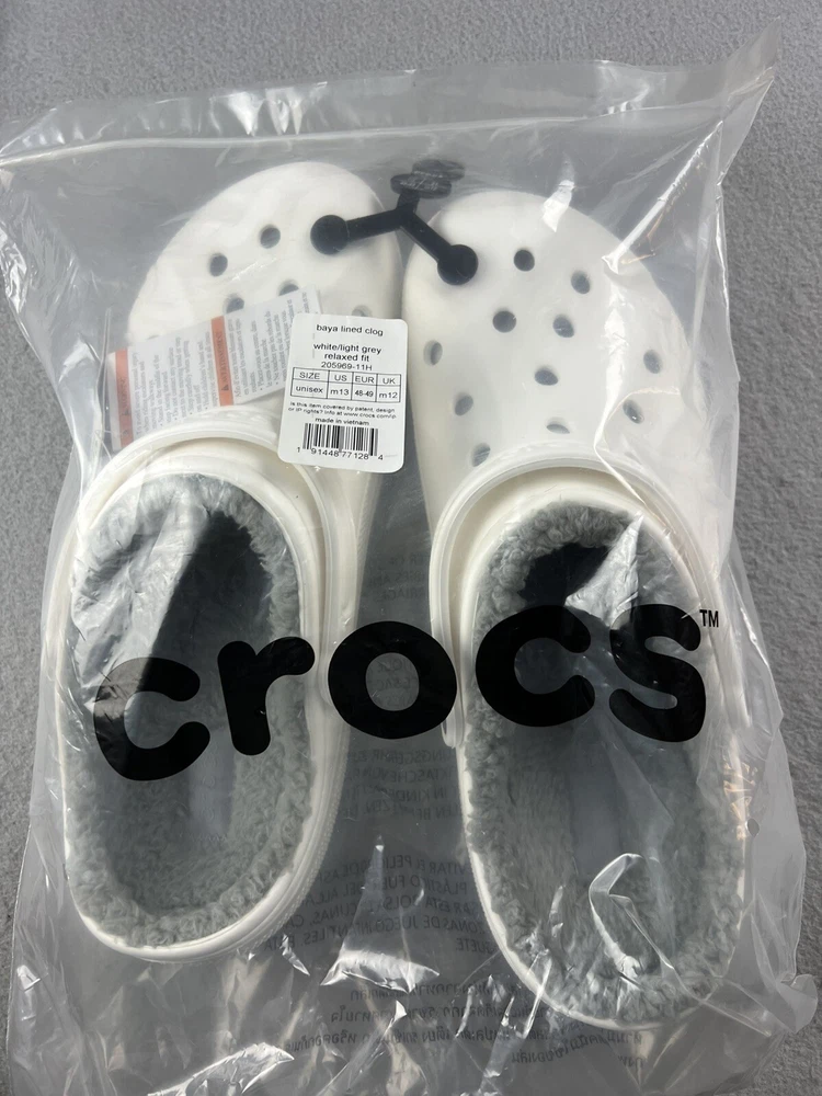 CROCS 205969-11H Men's Baya Lined Clogs Medium White/Light Grey Size 13