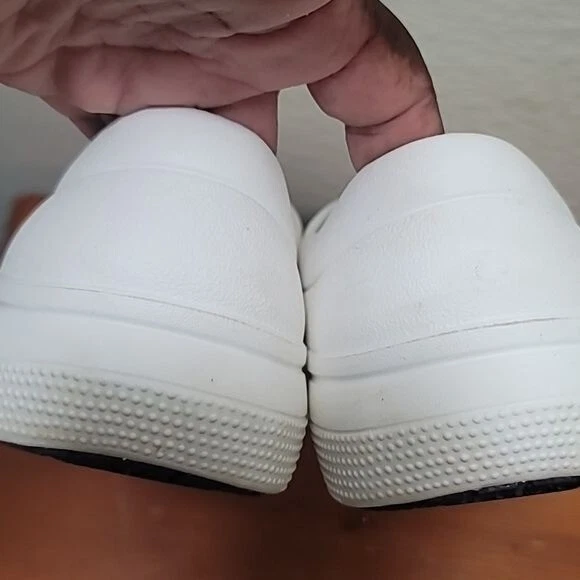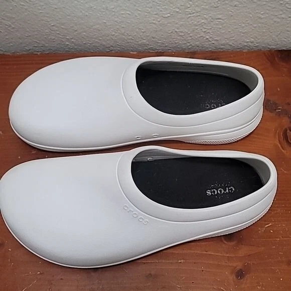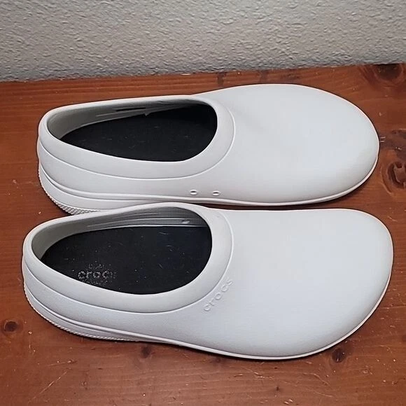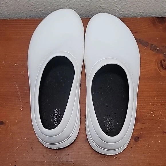 use crocs rubber dual comfort lock slip on slip resistant clog white men's shoes minor wear excellent condition see photo for details