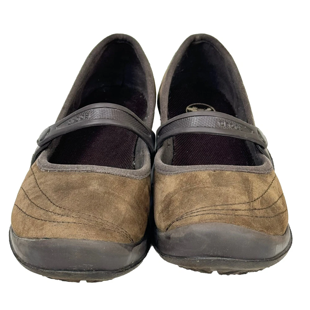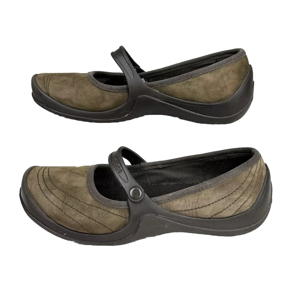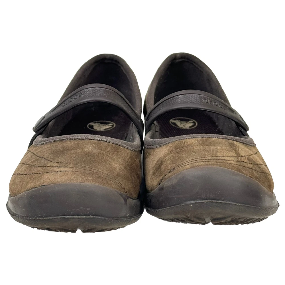 CROCS 10889 Wrapped Wedge Brown Nubuck Leather Mary Jane Shoe Slip Ons Women's Size 8 Great preowned condition. Scratched area on shoe button detail noted in photo. Color tones may vary depending on your monitor/device settings. Some photos may have been lightened to show detail. ⭐Smoke and pet-free ⭐Examine photos carefully as they are part of the description. ⭐Compare measurements with a similar piece of clothing you own that fits you well. ⭐If you need more measurements or images, do not hesitate to contact us. ⭐Ships quickly - same or next business day! Returns policy: If you receive your item and it doesn't fit, or is not what you wanted, all we ask is that you return it within 30 days, in the condition we sent it to you in. Please be aware that buyer pays for return shipping. If the item is new with tags, please do not wash or remove the tags. Store tags must be attached for a return. If they are not attached when returned, this will result in less than a full refund. Thank You! 😊