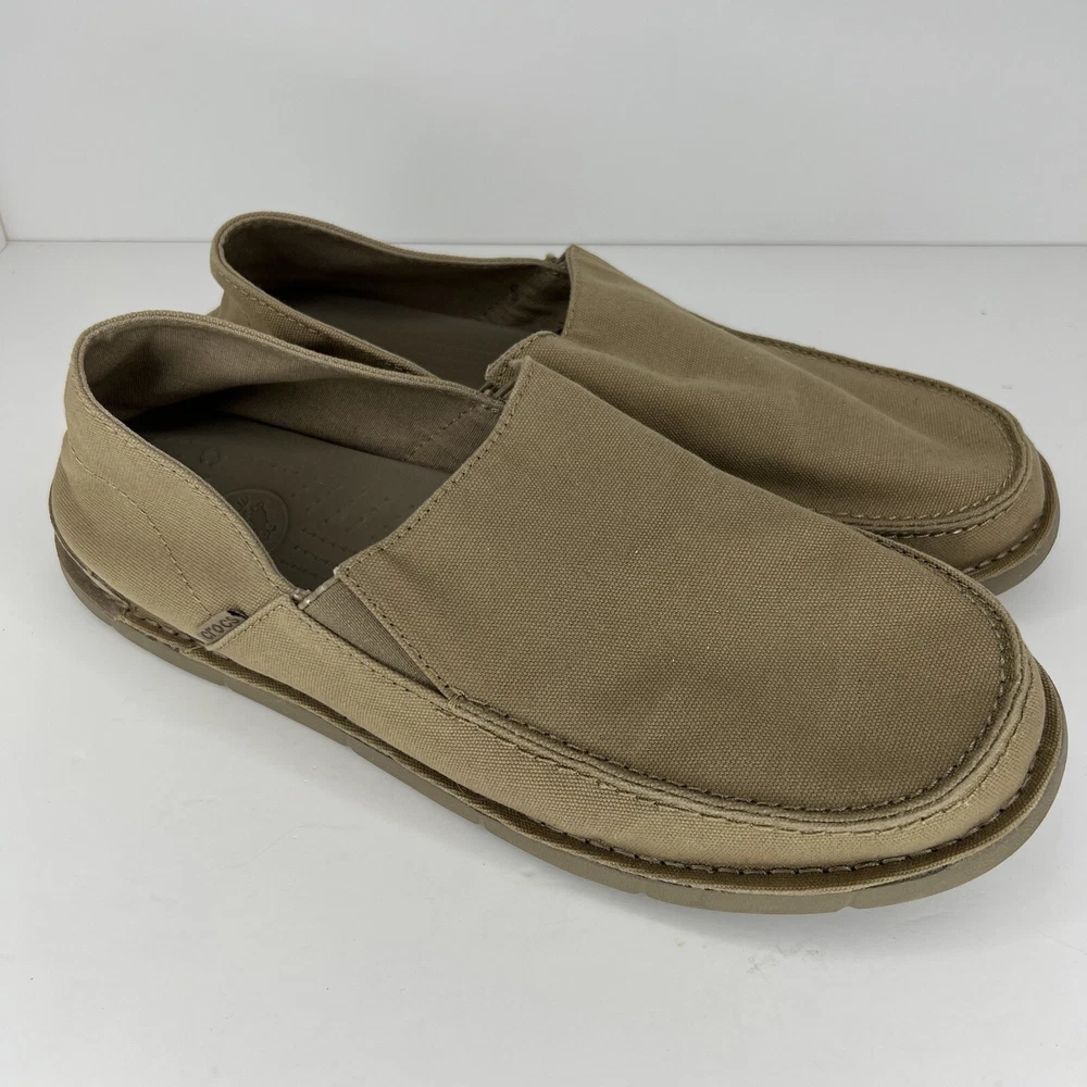 Elevate your casual style with these Crocs Santa Cruz II Luxe Slip On loafers . The shoes come in a charming tan beige color and have a solid pattern with round toe shape. They are made with lightweight canvas fabric, which makes it perfect for travel and everyday wear in summer, fall, and spring seasons. Slip-on closure provides easy wear, while the rubber outsole ensures durability and comfort. These men's loafers are part of the Santa Cruz product line and feature the brand's logo as an accent. The shoes have a comfortable M shoe width and come in size 12. The canvas upper material and rubber insole material make these loafers ideal for long walks, casual outings, or any occasion. Get your hands on these Crocs Santa Cruz II Luxe Slip On loafers and take your style to the next level. 100% CUSTOMER SATISFACTION IS OUR GOAL! Our items are always carefully examined for condition, measured if necessary, and photographed in a climate controlled and smoke-free environment. We make every attempt to accurately describe and clearly picture the items we have for sale. Please, ALWAYS view all of the photos. We value your business and our goal is your complete satisfaction. FAST SHIPPING All items are packaged with care and shipped out the same or next business day via USPS, FEDEX, or UPS with tracking numbers so you are always informed. RETURNS We offer a 30-day return policy. All items must be unused and unopened in the condition in which they were received, with original packaging, and all accessories included for return. REVIEWS - CUSTOMER SATISFACTION - COMMUNICATION We aim to make you happy. After you receive your shipment, please leave a positive review . If you have concerns or questions about your order, please contact us so we can resolve the issue. We will do our best to make you satisfied. THANK YOU FOR YOUR BUSINESS!
