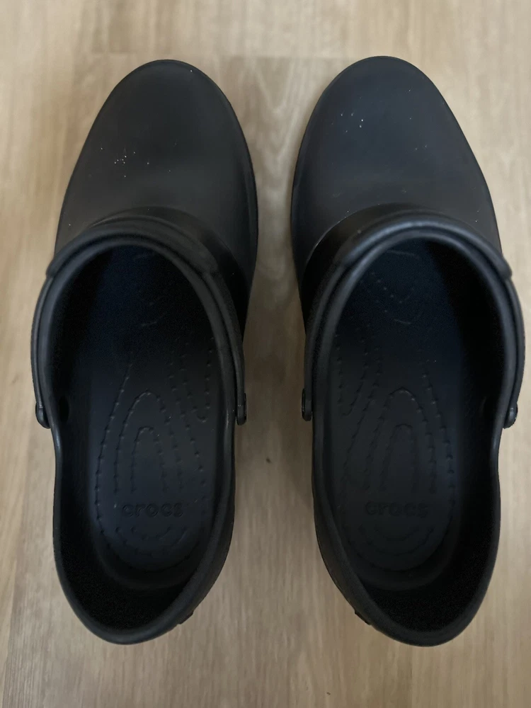 Step into comfort with the CROCS Women's Mercy Work Clog, a practical choice for those who value both form and function in their footwear. These clogs are designed with a closed toe and low top shaft, featuring a sleek black synthetic upper that's complemented by a subtle logo accent. The versatile design makes them suitable for casual wear, traveling, or working environments. Crafted for durability and safety, these clogs boast a slip-resistant and waterproof design, ensuring confidence with every step. The lightweight construction, coupled with a comfortable synthetic insole and a sturdy rubber outsole, provides excellent support for walking and working. With a size W10 and standard shoe width, the Mercy clogs are ready to tackle any season, making them a timeless addition to your comfort shoe collection.