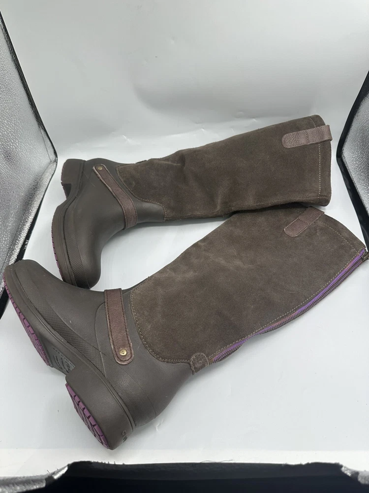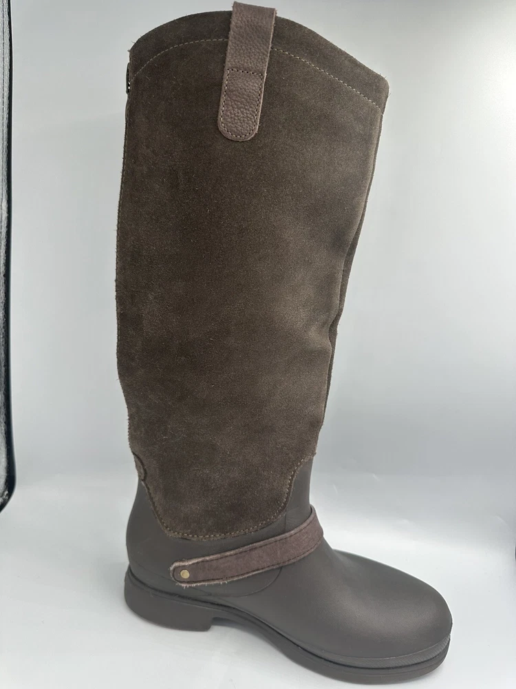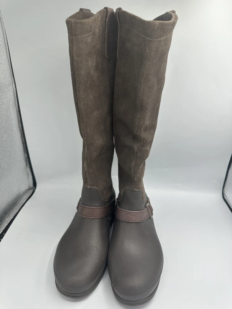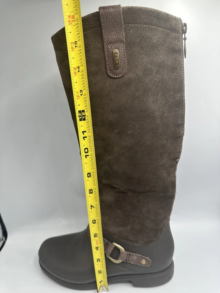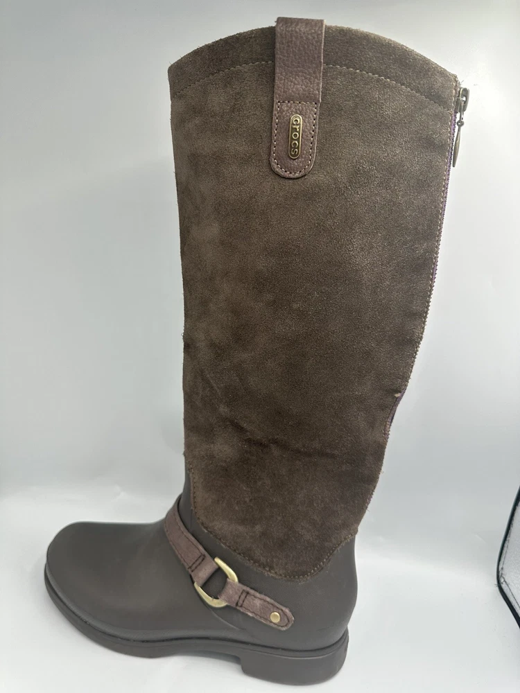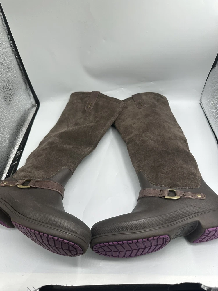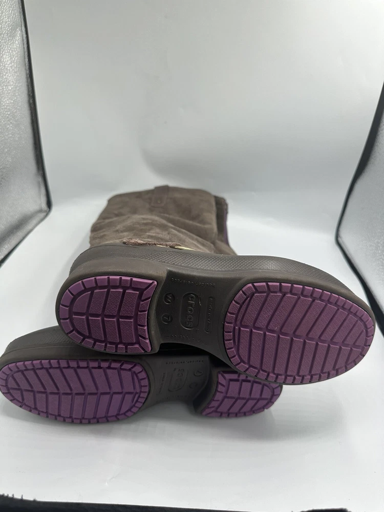 CROCS Women's Size 7M Tall Equestrian Brown Suede Rubber Back Zip Boots