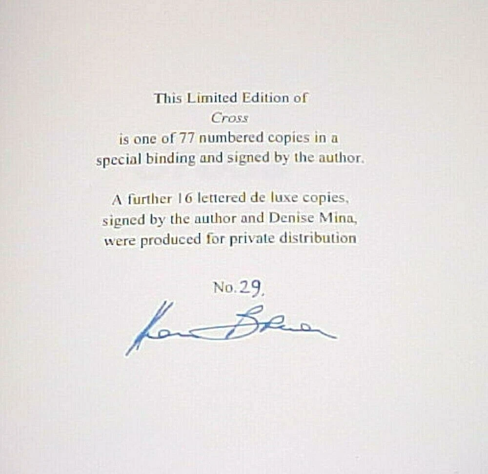 Cross by Ken Bruen Scorpion Press - Gladestry, U.K. 2007 Signed Limited Edition - Copy #29 of 77 As New Condition Book As New Glassine Dustjacket A beautiful, as new copy of the signed, limited edition (copy #29 of 77) of Ken Bruen's 2007 novel, Cross . The sixth installment in Mr. Bruen's very popular " Jack Taylor " series. This edtion contains an appreciation by Denise Mina and Michael Johnson. The book: •Signed by Mr. Bruen on the Limitation Page •Quarter-bound in brown, moroccan leather •Lovely, brown, hand-marbled paper covered boards •Titles stamped in gilt on the spine •Red/orange topstain is in AS NEW condition, unread and having been carefully stored since purchase, removed from the original seller's glassine protective wrapping only to take photos. The glassine dustjacket is also in AS NEW condition. A beautiful, signed, limited edtion of this highly entertaining, Irish-noir novel from the masterful Ken Bruen and Scorpion Press . PLEASE NOTE: I use the following terms to describe book conditions ... AS NEW: The book is in the same immaculate condition as when it was published. This could be the description for a book that has been lost in a warehouse for years, never shelved, thumbed or even opened yet may still be some years old. FINE (F or FN ): A Fine book approaches the condition of As New, but without being crisp. The book may have been opened and read, but there are no defects to the book, jacket or pages. NEAR FINE (NF) : May have 1 or 2 very minor defects. VERY GOOD (VG): Used condition, same as above only it may have two or three more minor defects such as small tears, scratches, small stains to covers, or minor tears and creases to inside pages. GOOD (G): As above only it may have a split hinge, larger tears to covers, soiling or staining of covers, whatever the defect it should be described in detail. FAIR (FR): As above with folds and tears throughout, markings to content. POOR (PR): As above with loose bindings, missing and torn pages throughout. High bidder to make payment by Paypal. Media Mail with tracking is free. Priority Mail and/or Insurance will be arranged upon request and at additional charge to the high bidder. International bidders should please use eBay's Global Shipping Program for payment. Also, international bidders should make allowance for any shipping delay which may result from customs inspections and please note that import duties, taxes and charges are not included in the item price or shipping charges. These charges are the buyer's responsibility. Please check with your country's customs office to determine what these additional costs will be prior to bidding/buying. Thank you for your interest and Good Luck! EDITORIAL REVIEWS - FROM: KIRKUS Galway private eye Jack Taylor must catch a psychopath who kills by crucifying. On the prowl for a really bad person, Taylor tries to kick some bad habits while kicking himself for having some bad timing. Long a substance abuser, he’s chosen to get clean the hard way, going cold turkey, and it’s half killing him. And it’s not just the booze, the pills and the smokes that are getting him down; it’s all that extra gloom and doom suddenly burdening his life, which on the best day was never a thing of joy. An American kid Taylor loved almost as a son is hospitalized, comatose, his chances for recovery slim to none. Taylor’s cop friend has a lump on her breast that terrifies both of them. And Taylor’s decision to help an alcoholic ex-cop spawns dire consequences. Yet when he’s asked to stop a sadistic killer whose hatred seems at once random and focused, he can’t back away. As one character says of Taylor: “Bottom line, you’re that rarity, you’re a decent human being…more flawed than most, but you’re not cold.” Though Bruen (Priest, 2007, etc.) sometimes nudges noir into bathos, this is dark-side stuff from a master. - 4/4/2008