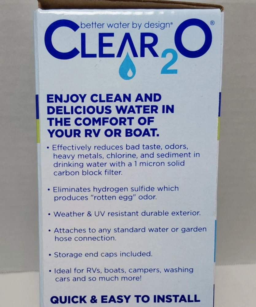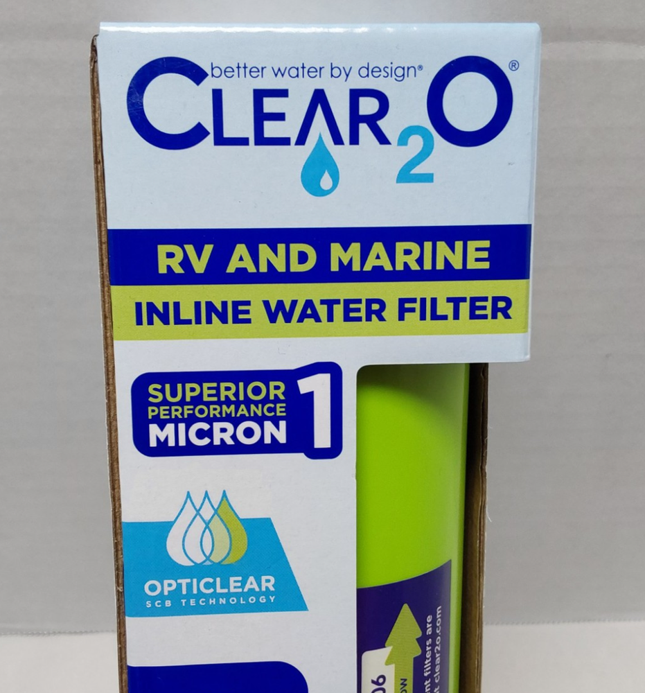 ~*** CLEAR 2o ***~ CRV2006 RV AND MARINE INLINE WATER FILTER OPTICLEAR SCB TECHNOLOGY IDEAL FOR RVS AND BOATS SOLID CARBON BLOCK FILTRATION THIS ITEM IS BRAND NEW ~ FACTORY SEALED AND SHIPS FROM UNITED STATES