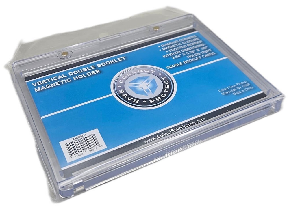 CSP Vertical Double Booklet Magnetic Holder Holds Open Vertical Booklet Cards Up To 175pt Hobby Supplies Info Manufactured by Collect Save Protect Holds Vertical Booklet Cards Crystal Clear Holders Made with PVC Free Material Frosted Borders Designed for Booklets up to 175pts Thick Visit Our Store - Browse Our Full Inventory All your storage and protection supplies in one place. We carry a full line of collecting supplies, add on additional items, mix and match different items. When you check out and pay for all items with a single payment, we will combine all of your items into a single shipment with the total shipment charges. Please be sure to combine all items into a single order/payment. Shipping charges for most items and orders will be calculated out upon checkout, but feel free to "request total from seller" or request a revised invoice prior to payment, and we will adjust your shipping charges to the appropriate USPS, UPS or FedEx rate. Brand New, Top Quality Supplies from the Leading Manufacturers. Quality and Satisfaction Guarantee! - We accept returns on all items for any reason . Purchase with confidence. Need Supplies? We Carry Everything! 100,000's of cards In stock now! Your First Stop For Hobby Supplies, Trading Cards and Sealed Boxes Shipping Across The World Since 2009! For combined purchases and orders for multiple different items, please add all items to your ebay cart to estimate shipping. Shipping charges will be calculated based on the total size and weight of your order.