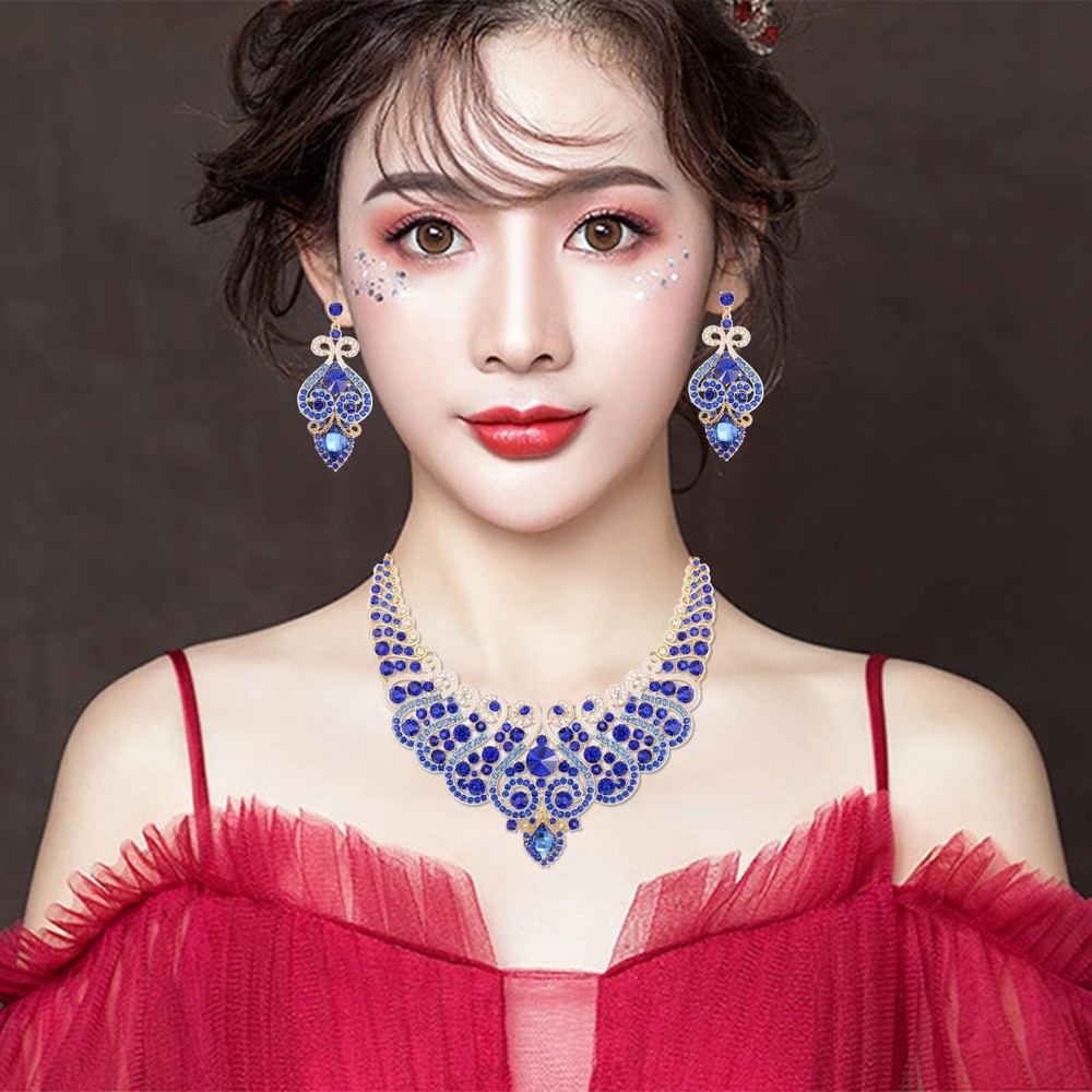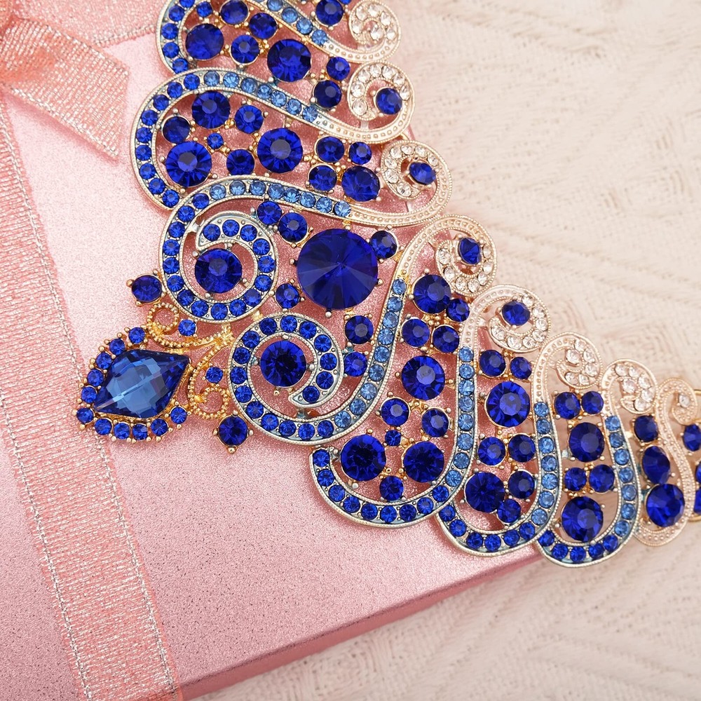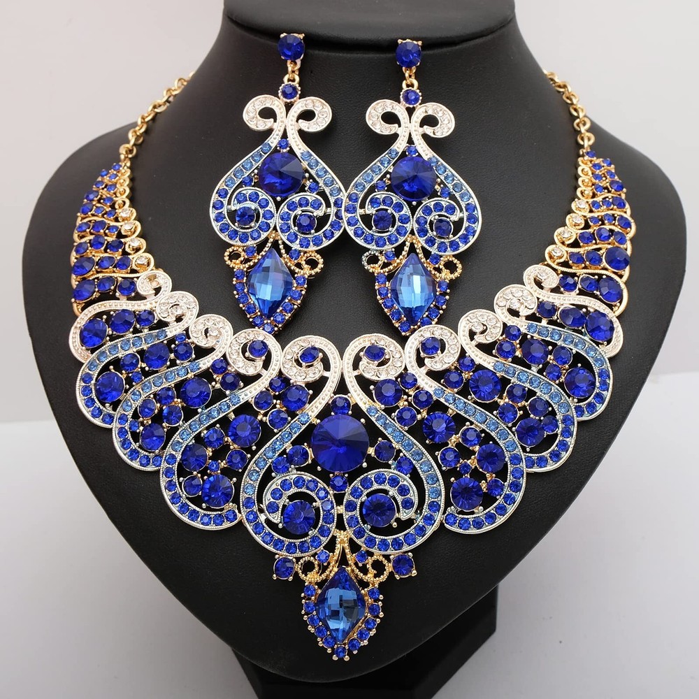 CSY Luxury Big Statement Bib Necklace Earrings Sets Wedding Party Prom Dress Costume Jewelry Set Accessories for Brides Women Product Details Color: royal blue-gold tone Brand: CSY MPN: Does not apply UPC: Does not apply EAN: Does not apply Department : womens Date First Available : March 17, 2022 Brand, Seller, or Collection Name: CSY Metal: alloy Material: Metal Gem Type: Crystal, Rhinestone Clasp: Lobster Clasp Ring size: adjustable WEDDING JEWELRY: Perfect Wedding Jewelry Set,Necklace Jewelry Sets,Rhinestone Crystal Necklace Dangle Earrings, With A Fabulous Design And Solid Construction.The Classic And Elegant Always Keep Pace With Fashion,Which Will Make A Timeless Accessory To Any Jewelry Collection, Inlaid With Rhinestones And Crystal , Shiny And Sparkling, Elegant And Streamlined Design, Wearing This Jewelry, Give You Charming Look And Win More ComplimentsEXQUISITE DESIGN AND MATERILA: Use Environmentally Friendly Alloy Materials, 316L Stainless Steel Stud,Well Make And The Earrings Had Additional Backs. The Earrings Are Dangling And Gorgeous,With Shiny Rhinestones And Crystal, Smooth And Comfortable To Wear. Stainless Steel Earrings Pin, More Safty To UseMOST AMAZING AND PERFECT GIFTS: It’s A Very Personalized Gift For Women,Perfect For Any Gift Giving Occasion. It Can Be As A Great Gift For Women, Bride, Bridesmaid, Ladies, Mother, Daughter, Wife, Friends, Girl Friend And Her For Wedding, Prom, Photo Props, Holiday, Beach, Party, Birthdays, Valentine's Day, Mothers’ Day, Summer Day, Christmas Day, Daily Day Or Any Other Anniversary Festivals.The Well-Decorated Earring Is The Perfect Choice For You To Express Your Love And Kindness