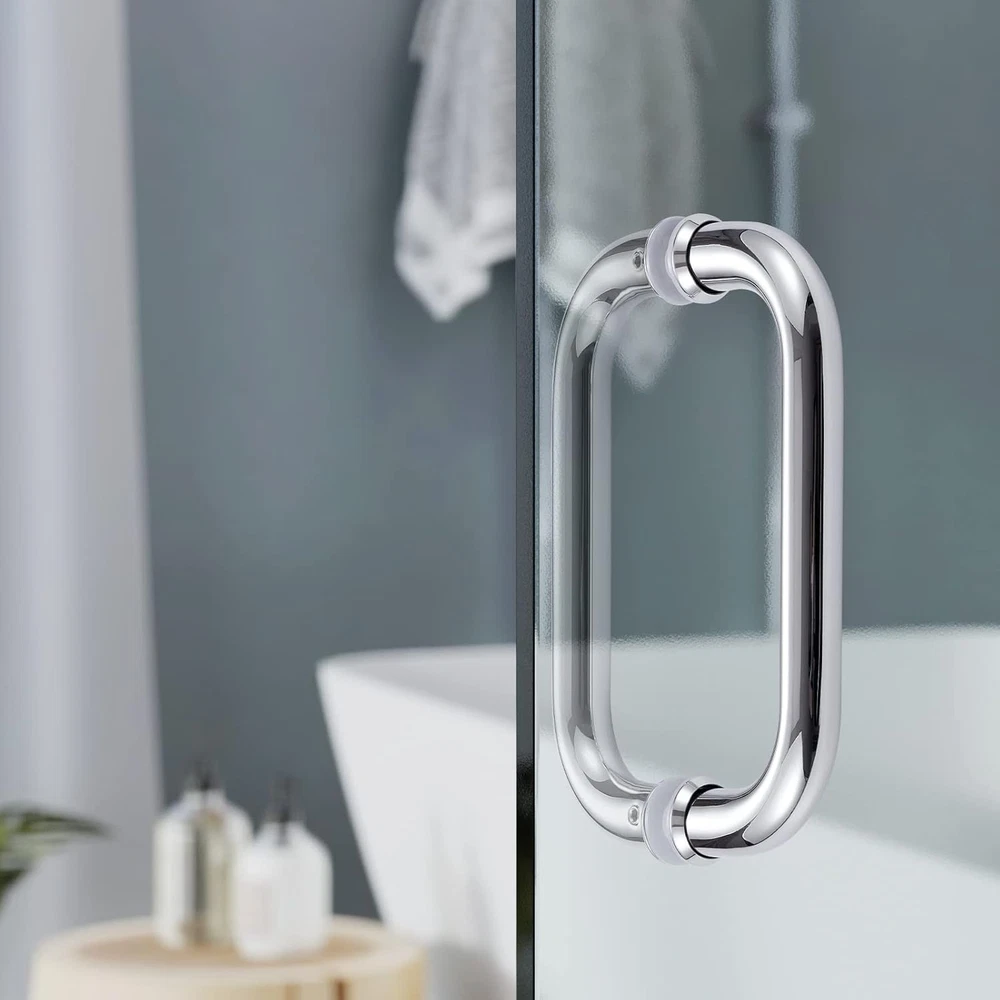 1.Universal Compatibility: This modern shower door handle pull is designed to fit glass doors with a thickness of 6-12mm (1/4" - 1/2") and wooden doors with a thickness of 35-55mm (1-3/8" - 2-1/6"). Ideal for frameless shower doors, bathroom glass doors, and barn doors, its 6-inch back-to-back c pull handle ensures versatility. Featuring a 19mm (3/4") diameter for a secure grip, this glass shower door handle 6 inch provides added safety, especially in wet environments, reducing the risk of slips or accidents. Perfect for shower door handle replacement or upgrades. 2.Premium Build and Finish: Crafted from 304 stainless steel with a polished chrome finish, this shower door handle 6 inch for glass door offers exceptional corrosion resistance, maintaining its sleek and shiny appearance over time. Built to endure humid environments such as bathrooms, shower enclosures, or patios, it combines style and durability. The polished stainless shower door handle is an excellent choice for enhancing modern bathrooms. 3.Ergonomic Double-Sided Design: The back-to-back c pull handle provides a symmetrical grip, making it easy to operate from either side of the door. This c-shaped glass door handle is ergonomically designed for use on frameless shower doors, ensuring seamless opening and closing. Its smooth lines and solid construction enhance safety while complementing any modern shower door hardware. 4.Complete Installation Kit: Each set includes: a pair of shower door handles for glass doors, 4 decorative covers, 4 rubber gaskets, 2 rubber sleeves, 4 hex screws, one 45mm screw (for glass shower doors), and one 80mm screw (for wooden doors). This comprehensive kit ensures you have all the parts needed for shower door handle parts replacement or new installations. 5.Easy Installation: Installation is straightforward with precise measurements. Drill two holes with a center-to-center distance of 152mm (6 inches). For glass doors, use a 1/2 inch (12mm) drill bit, and for wooden doors, use an 5/16 inch (8mm) drill bit. Secure the 6-inch back-to-back shower door handle using the provided screws for a firm and lasting fit. Perfect for DIY enthusiasts or professional installation. Product Description Brand Name Ranbo Finish Polished Chrome Material 304 Stainless Steel Glass thickness 1/4"( 6 mm )-1/2" (12 mm ) a pair of 80mm/3.15" bolts backup stainless steel 304 threaded bolts to fit most doors up to 65mm/2.56" thickness. Application tempered glass doors,great accessories for bathroom at home,hotel or office! Size 7" x 5.4" x 0.75"(L*W*H) Center to Center Length 6" (152 mm) Design Style Modern Modernize your shower door with this c-shape shower door handle. When you choose this back-to-back handle, it complement to the decor of most shower door, you can rest assured that it Quick And Simple Assembly:Hexagon screw,safe and an-ti-theft,simple installation Super Stylish Design: Ranbo 6“ handles feature a minimalistic and modern design that is suitable for a wide range of bathroom décor styles Secure Structure: Our glass shower door hardware has a simple design that ensures a comfortable grip even when you’re getting out of the shower. Ranbo c-shape shower door handle The whole is made of 304 stainless steel material,made corrosion resistant, no rust. Easy Installation: Comes with Back To Back Mounting Hardware and Allen Wrench to Mount it Through the Glass. Standard Plastic Washers Included to Protect Against Glass to Metal Contact Comfortable and Durable Design: The shower handle is both durable and comfortable With the Sturdy Materials provides an Easy Grip and appealing style to your bathroom.The Matching Trim Washers will Provide a Lifetime of Practical Use. 100% Brand New and Quality Guaranteed Polished Chrome Finish, the appearance is simple and beautiful Minimum Compatible Door Thickness: 1/4"( 6 mm ) Maximum Compatible Door Thickness: 1/2" (12 mm ) Diameter of Glass Door Hole: 1/2" (12 mm) Required) Center to Center Length: 6" (152 mm) Made of 304 stainless-steel door handle is waterproof and will not rust even when exposed to steam and high temperatures. Overall Product Weight: 9 OZ Remark: 1.Inner handle with Screw Hole on Out look install inside home 2.Only used for tempered glass, don't used for ordinary glass 3.Install outer handle first, then install the inner door handle 4.Easy to install and save your time and energy 5.The rubber or plastic nut needs to just attaching on glass door surface 6.Please conform your original door installing hole key parameters first- distance of hole center and Hole diameter 7. Advise to check your original old handle size or relative manula before you replace, conform size first such as handle thickness and installing center hole distance and hole diameter 8K Manual Polishing,Comfortable Hand Feel Manual fine polishing,smooth as bright as mirror,not east to get rust,light and beautiful,fine casting processingl,feel more comfortable Quality 304 Stainless Steel 1.0mm Tube Form first-line steel factory,1.0mm thickness.thickness error within 0.002mm.strong and durable,not east to change the shape Complete Fittings Pack You don't need to spend even one more penny to buy any more tools for its installation, since a complete backup accessory pack are offered.