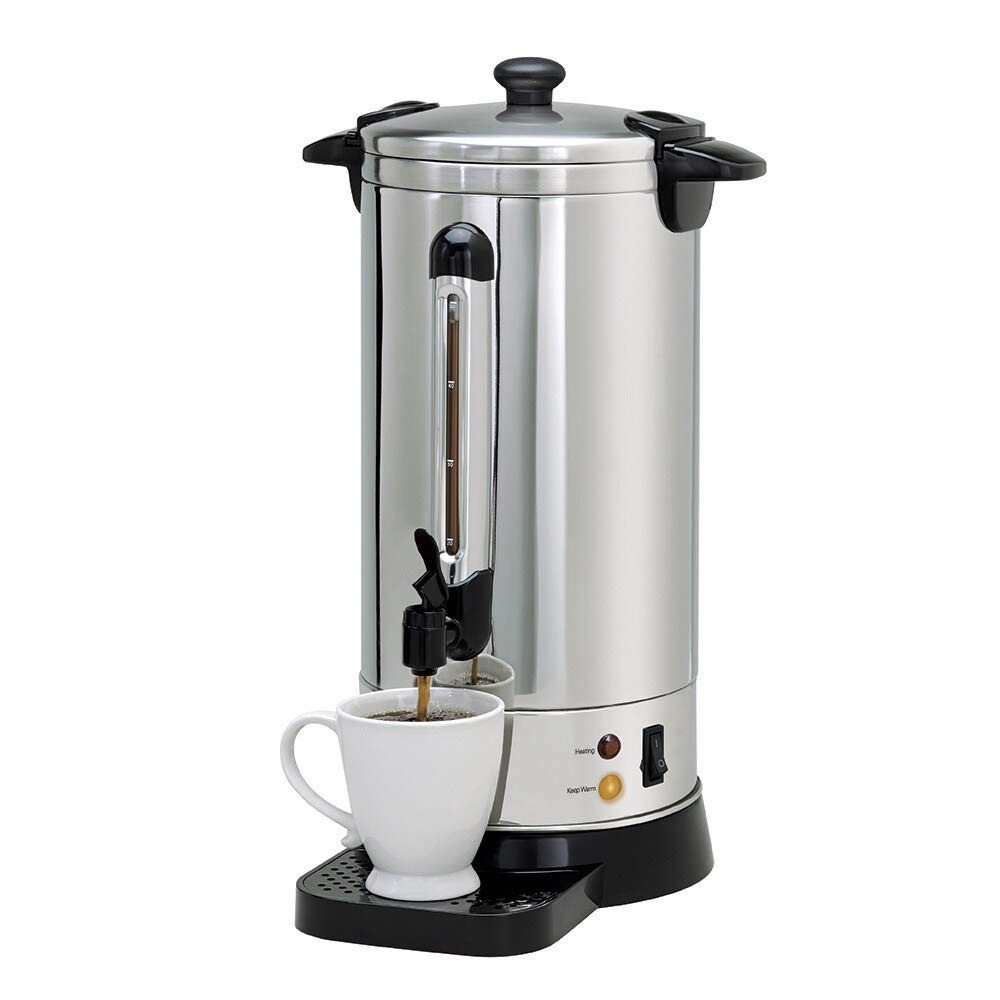 Stainless steel housing with double-wall insulation Makes 50 - 5.7 oz. cups Brews about cup per minute Drip tray for less mess Dishwasher safe basket Note: Please refer the user manual below for trouble shooting
