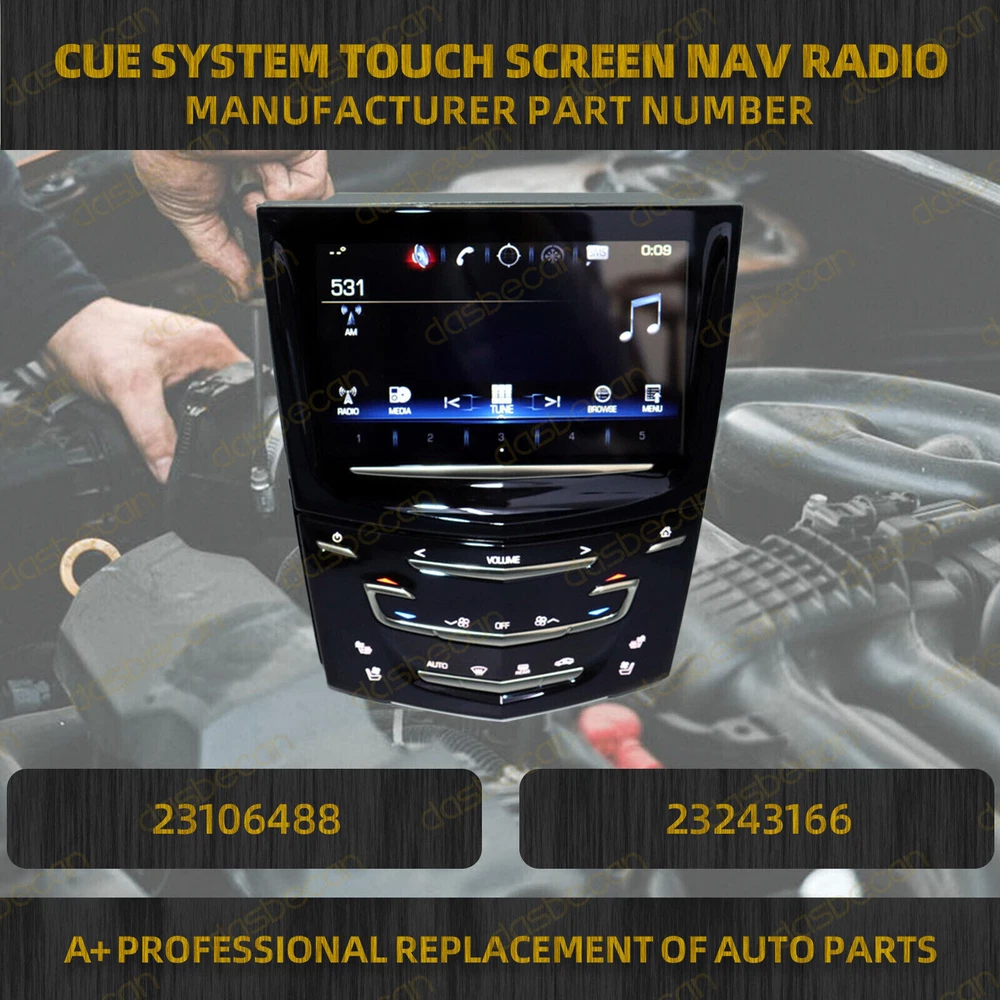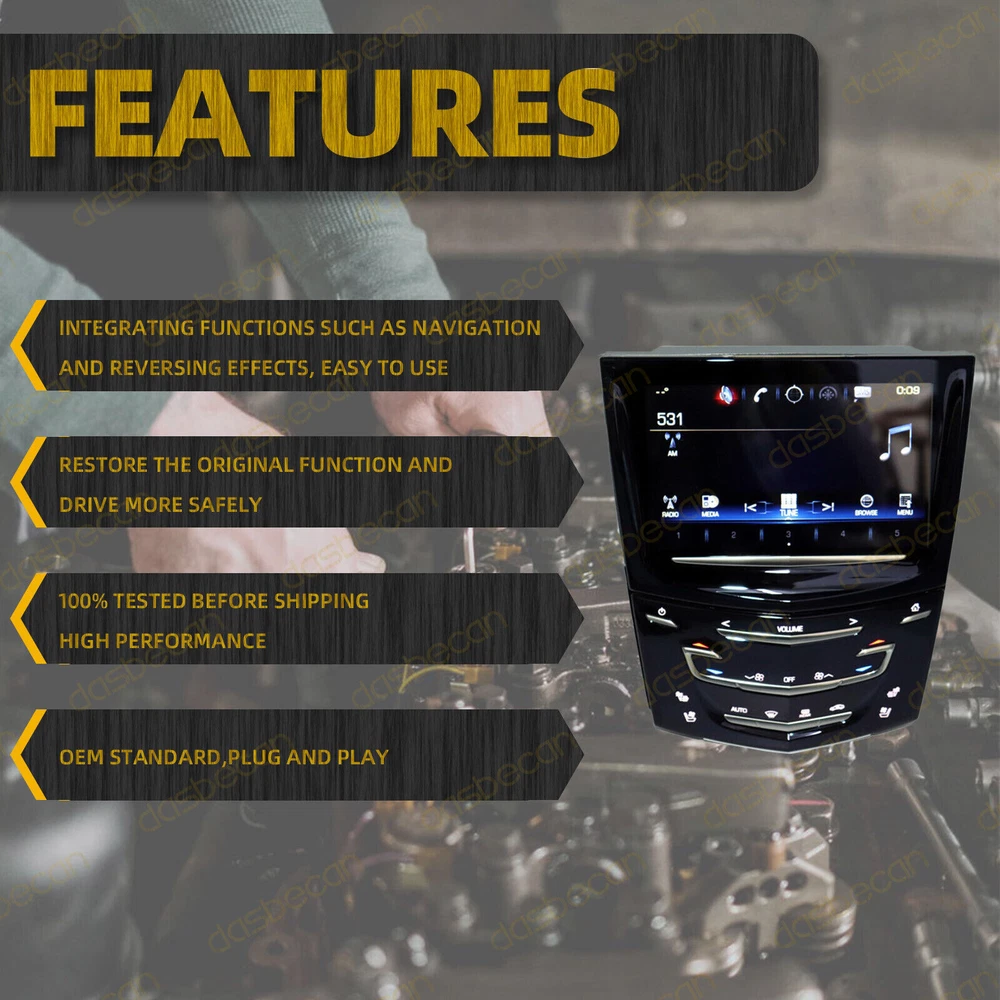 Features & details 【Manufacture Part Number】 23243166, 20867045, 22912608, 22935061, 22980207 【Package Includes】 1 PCS Touch Screen Nav Radio 【 Compatible with 】 2013-2019 Cadillac ATS 2015-2020 Cadillac Escalade 2013-2019 Cadillac SRX 2013-2020 Cadillac XTS 2013-2019 Cadillac CTS CTS-V 2013-2016 Cadillac ELR Note: This Item has both HEATED AND COOLED SEAT OPTIONS ( 2 buttons) !! 【 Features 】 Color: Black Condition: 100% Brand New Fitment Type: Direct Replacement Fully tested and 100% functional 【Advantage 】 Completely unlocking without the need for CUE System Touch Screen Display dealer reprogramming (plug and play) to save large! User interface control, enable users to control and navigate through various user interfaces Provides an intuitive interactive interface for easy gaming, video playback and more NOTE: Please verify part number on the back of the unit before you purchase to assure compatibility. Please make sure your existing touch screen has the same style of chip as pictured. 【Service & Warra nty】 Purchase from DASBECAN, enjoy 1 year no worries-warranty, whenever you met issue when installing or using, please contact us via eBay Message, and we will reply within 24 hours and help solve the problem. Stablize Reliability Exact match, Precision manufacturing Brand New Appearance, New Standard Quick installation, Within A Few Minutes OE NUMBER: 23243166, 20867045, 22912608, 22935061, 22980207 Package Includes: 1 Pcs Touch Screen Nav Radio Compatible with: 2013-2019 Cadillac ATS 2015-2020 Cadillac Escalade 2013-2019 Cadillac SRX 2013-2020 Cadillac XTS 2013-2019 Cadillac CTS CTS-V 2013-2016 Cadillac ELR Customer Question & Answers Q1: Will This Part Fit My Vehicle? We list all the compatiblity, if your vehicle does not show up on the compatibility table at the top of our listings, welcome you to contact us for free consulation before purchasing a product. Q2: Does they come with warranty? All of our product comes with 1-year warranty, but some times you need to pay the shipping fee. Q3: How to use it? If you don't know how to install this accessory, welcome to contact us, we will provide you with a video guide. Payment Shipping Warranty & Service Returns/Exchanges Contact us Payment Most of the payment methods are available, such as Paypal, Payoneer, Credit Card. Within 1 day of receiving your payment, we will start processing your order. Shipping All Items Will Be Ship Within 1working Days, and We Will Ship out All Orders As Soon As Possible After Payment Verified, Please Allow up to 1-6 Business Days for Delivery. Why Choose the Us Stock? 1. Us Local Shipping, No Extra Customs Cost. 2. Fast Delivery: 1-6 Working Days Delivery. Warranty & Service All the product in our store come with a 1-year-warranty. If there is a problem with the product you purchased within 1 year, please contact us, we will provide you with after-sale protection. Our job is not complete until each customer is satisfied! Receiving positive feedback is extremely important to us. We give all our buyers positive feedback as soon as payment is received Negative feedback and bad ratings do not solve the problem! If you contact us via eBay, we will be more than happy to work with you! Returns/Exchanges If you received an incorrect, damaged, defective, or item not as described , contact us for a partial/full refund or replacement on our costs. If we shipped you the wrong part, we pay for the return shipment and send you the correct part. If you ordered the wrong part, contact us for a return address and simply return it,give us a tracking number. We will send you the new item as soon as the returned package is received; If you simply don't want the part, ship it back and give us a tracking number. After we receive the item, we will refund the item price minus shipping costs. All returns must be done within 30 days after receiving the package. Parts must be new and unused in the original condition: including box, packaging and all other accessories,or we will charge you a partial costs. Contact us If you encounter any problems during purchase or use, please contact us via eBay message directly. On Nov 19, 2024 at 16:52:12 PST, seller added the following information: