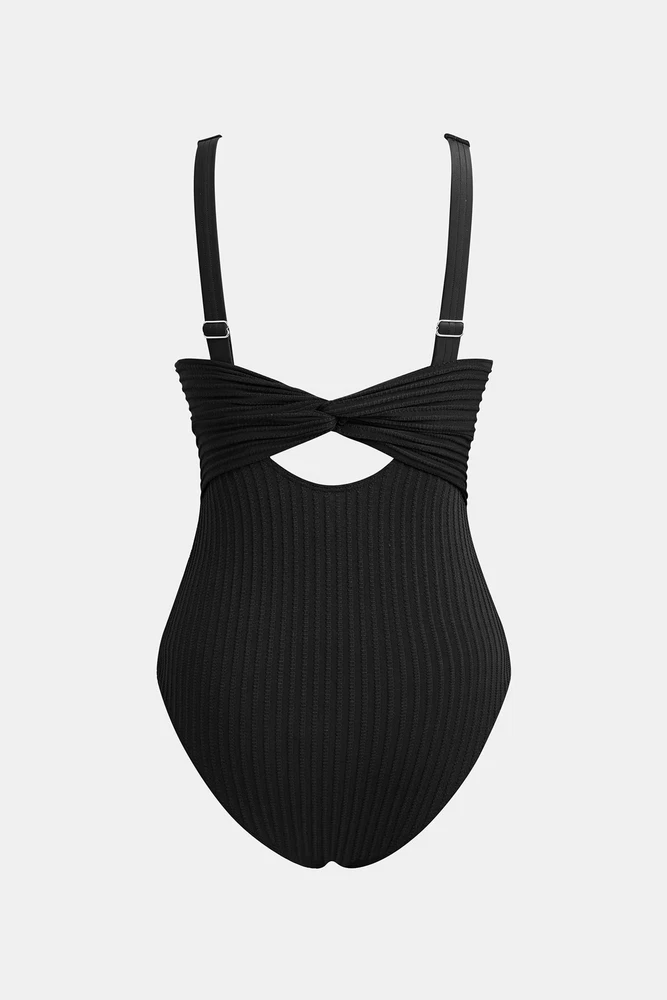 CUPSHE Black Ginger Ribbed & Ruched One-Piece - Medium *NWT*