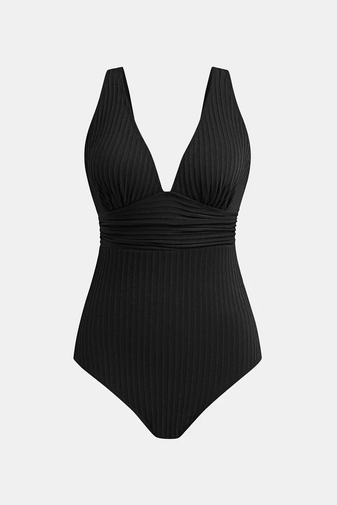 $ 11.61CUPSHE Black Plunging Twist Mesh Panel One Piece Swimsuit Medium *NWT*
