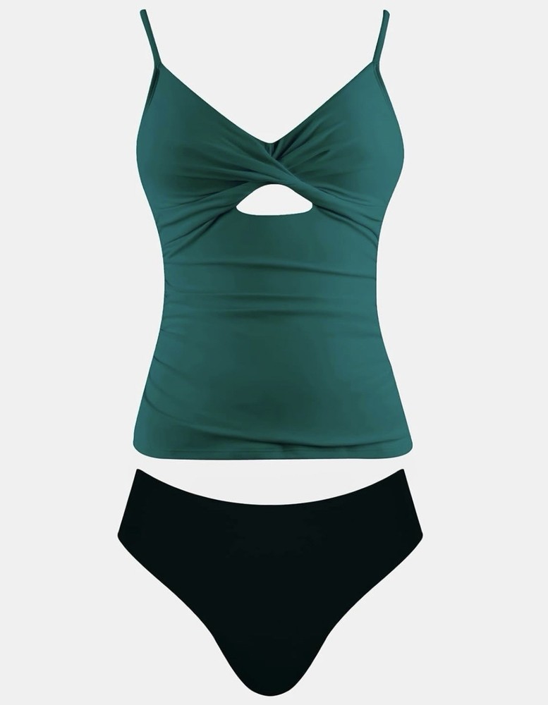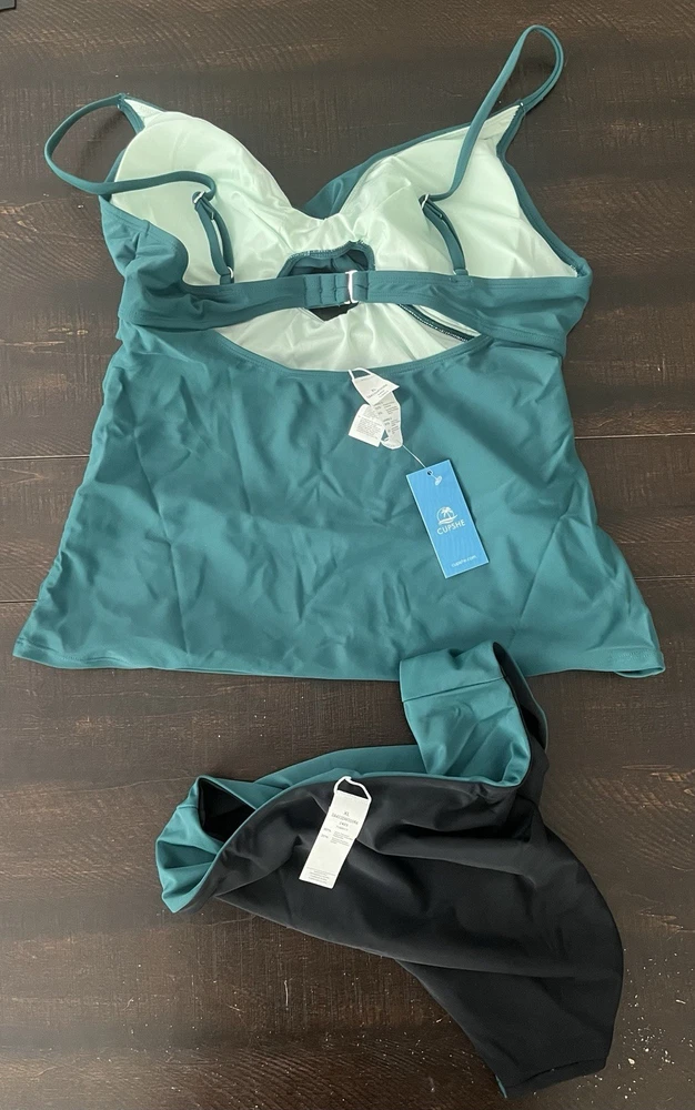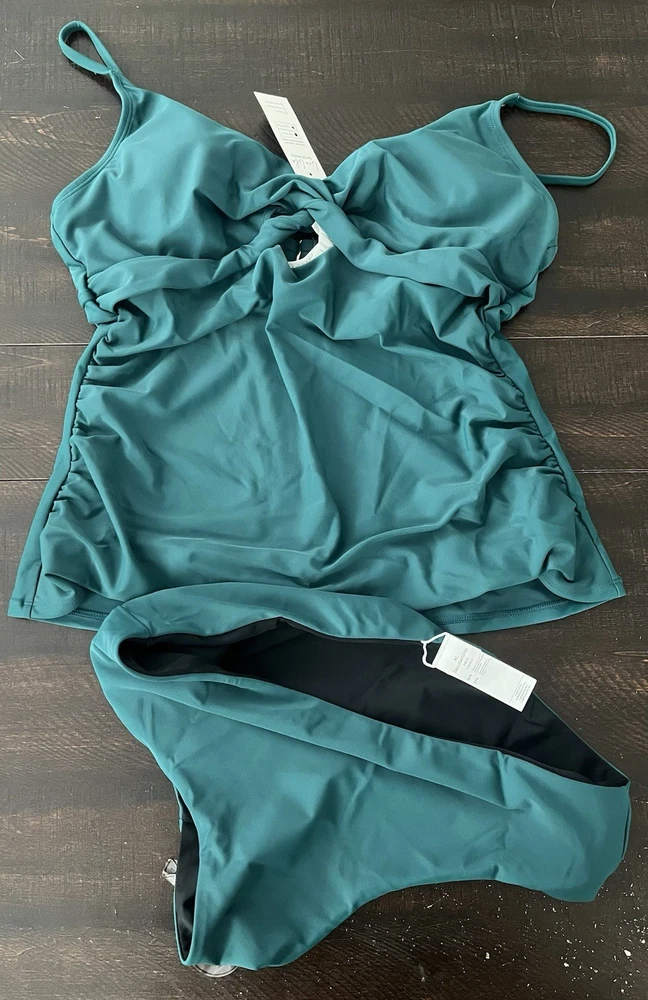 Sells for $38.99-$49.99 on Amazon!!! BRAND NEW WITH TAGS Fabric type Materials:80%NYLON,20%SPANDEX Care instructions Regular Wash Origin Imported Closure type Hook and Eye About this item Design: The Tankini Sets for Women Features Cutout and Ruched Details. The Two Piece Bathing Suit Applys Front Wrap, Back Hook, Spaghetti Adjustable Straps, and Mid Rise Reversible Bottom Offer A Stylish Beach Option. About Cup Style: with Soft Removable Cups. Garment Care: Regular Wash. Recommend with Cold Water. Do not Use Bleach. Do not Tumble Dry. Available in size XL
