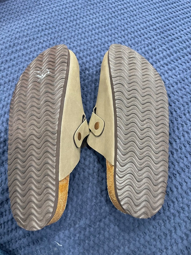 Elevate your daily comfort with the CUSHIONAIRE Women's Hana Cork Clog. These size 8.5 sandals feature a sleek beige leather upper complemented by a tasteful buckle accent, blending style with ease-of-wear. The slip-on design ensures convenience while the flat heel maintains a level stride.Crafted for those who value foot comfort, the Hana model boasts a signature cushioned footbed supported by a durable cork base. Whether you're navigating city streets or enjoying a casual day out, these clogs offer a harmonious combination of sophistication and all-day ease.