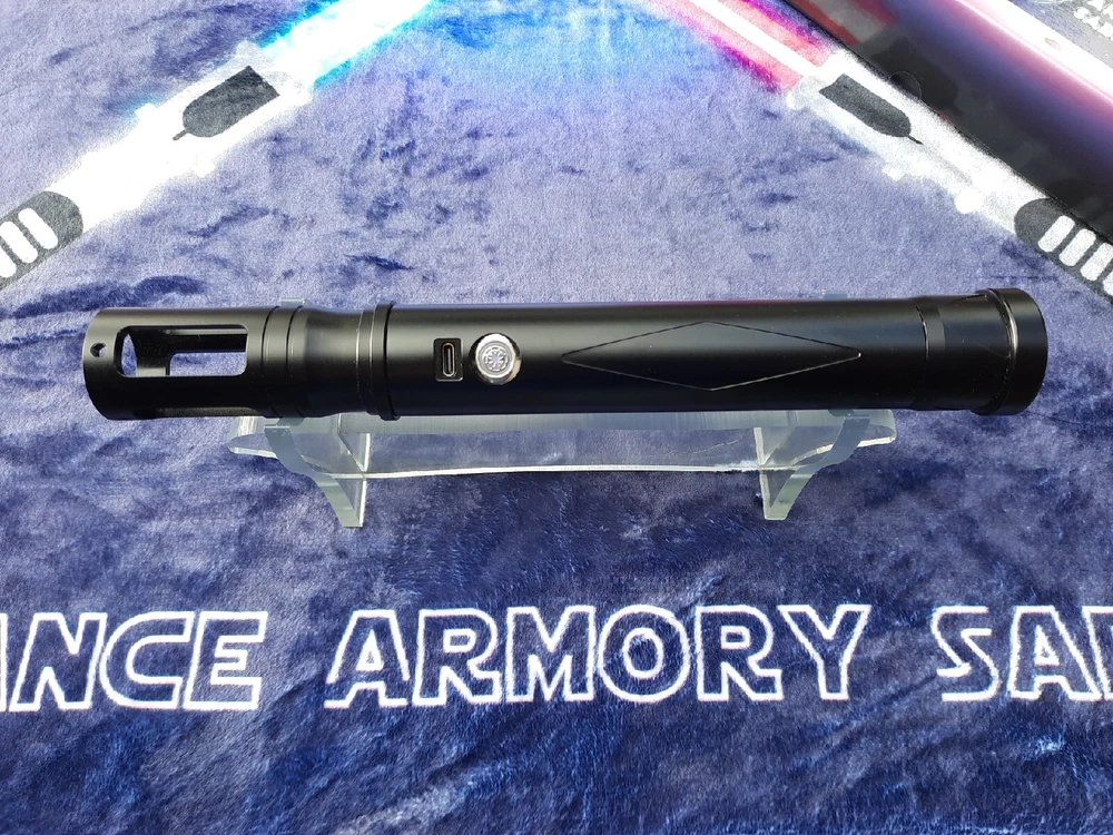 CUSTOM BLACK DIAMOND LIGHTSABER XENOPIXEL LED PIXEL BLADE. CUSTOM XENOPIXEL LED BLADE BLACK DIAMOND LIGHTSABER. 10.5"HILT 1"DIAMETER BLADE 36"BLADE LENGTH. HAS SMOOTHSWING WITH GESTURE CONTROL, FLASH ON CLASH, TIP DRAG, LOCKUP, BLASTER, AND MORE. OVER 30 FULLY CUSTOMIZABLE SOUND FONTS, BLADE IGNITIINS, AND BLADE COLORS. COMES IN CUSTOM BOX WITH CUSTOM CLEAR ACRYLIC DISPLAY STAND AND BLADE PLUG. 30 DAY DEFECT WARANTY. PLEASE EMAIL QUESTIONS. ALL SALES FINAL. CUSTOM BY ALLIANCE ARMORY. THERE IS NOW A 25% CANCELATION FEE ON ALL ORDERS!