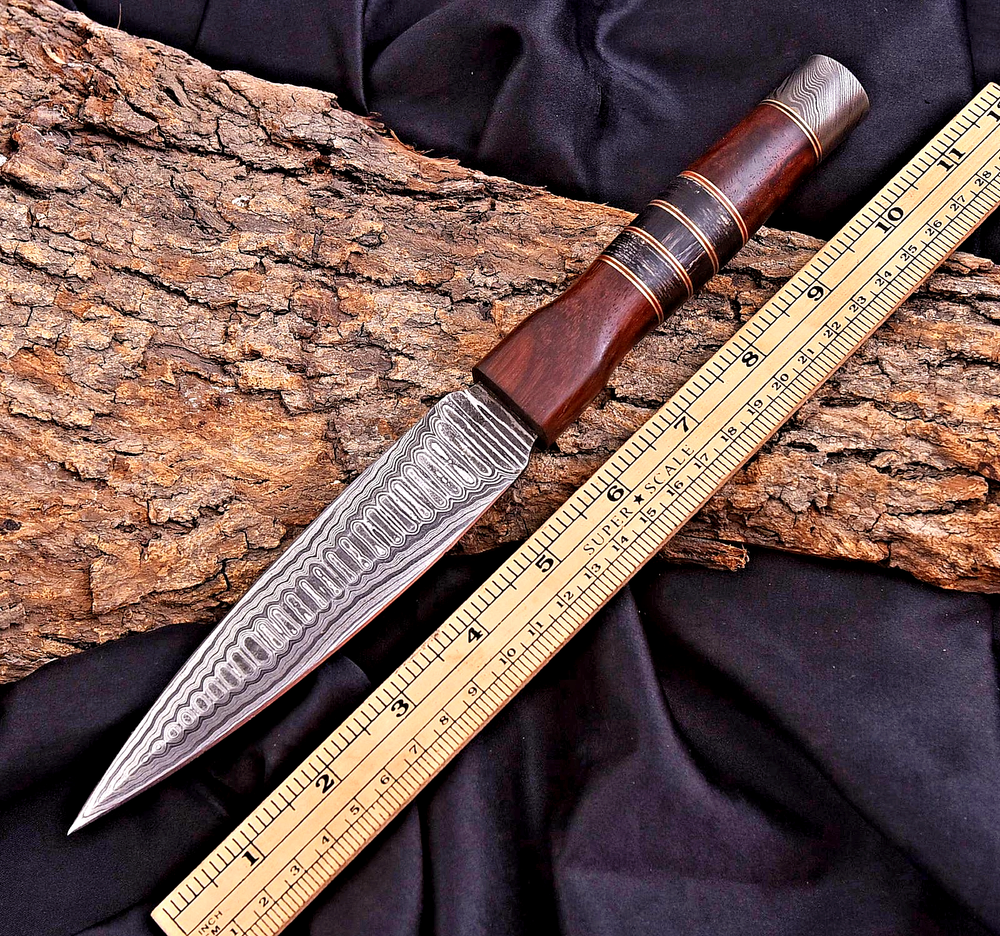 Type: Boot, Bowie Knife, Combat, Everyday Carry, Hunting, Survival, Throwing, BOOT KNIFE Vintage: No Original/Reproduction: Original Handmade: Yes Handle Material: Wood Blade Length: 6" INCHES Tang: Full Country of Origin: Pakistan Features: Sheath Included Blade Type: Needle Point Blade Edge: Plain Blade Color: Gray Dexterity: Ambidextrous Blade Material: Damascus Steel Brand: Damascus