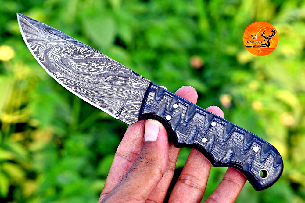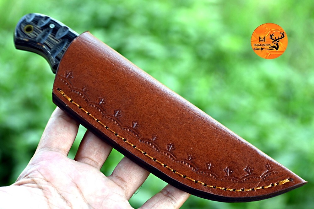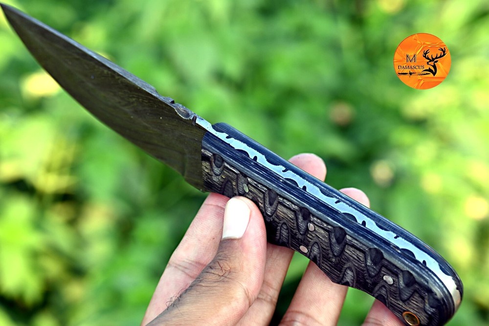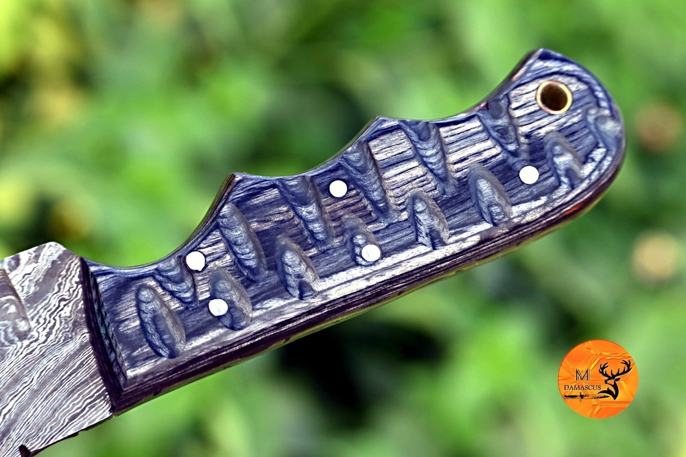 Blade Length: 4" INCHES Original/Reproduction: Original Blade Edge: VERY SHARP Vintage: No Handle Material: ENGRAVED PAKKA WOOD HANDLE Dexterity: Ambidextrous Blade Color: Gray Tang: Full Blade Type: Drop Point Brand: M DAMASCUS Features: Sheath Included Type: SKINNER HUNTING KNIFE, Boot, Bowie, Bowie Knife, Combat, Everyday Carry, Hunting, Survival, Throwing, CAMPING KNIFE, HIKING KNIFE, FIXED BLADE KNIFE, OUT DOOR KNIFE Handmade: Yes Blade Material: Damascus Steel