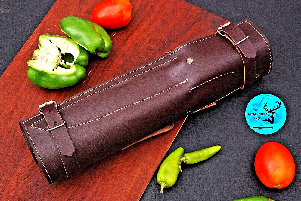 CUSTOM HAND MADE CHEF KNIFE SET FORGED DAMASCUS STEEL BLADE Wood Handle This superb design Chef Knife Set is hand forged. Blade of this knife has a nice file work and is made of 512 layers of 4340 stainless steel and 1075 high carbon steel and hardness 55-58 HRC . This robust Blank Blade is lab tested under intense conditions, the balance and shape of this Blank Blade ensures perfect grip. Overall Pieces : 6 Slicing Knife : Blade 8" Inches - Handle 4.5" Inches Cleaver Knife : Blade 6" Inches - Handle 5" Inches Peel Knife : Blade 5.25" Inches - Handle 4.75" Inches paring Knife : Blade 4" Inches - Handle 4.75" Inches paring Knife : Blade 3.5" Inches - Handle 4.75" Inches Santoku Knife : Blade 4.5" Inches - Handle 4.75" Inches Damascus Design: Twist Pattern Layers: 512 Package Includes: with Leather Sheath Bag Care Instructions: Keep the knife dry after each cleaning. Warning: Keep fingers clear of blades. Store away from children