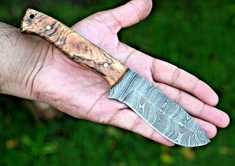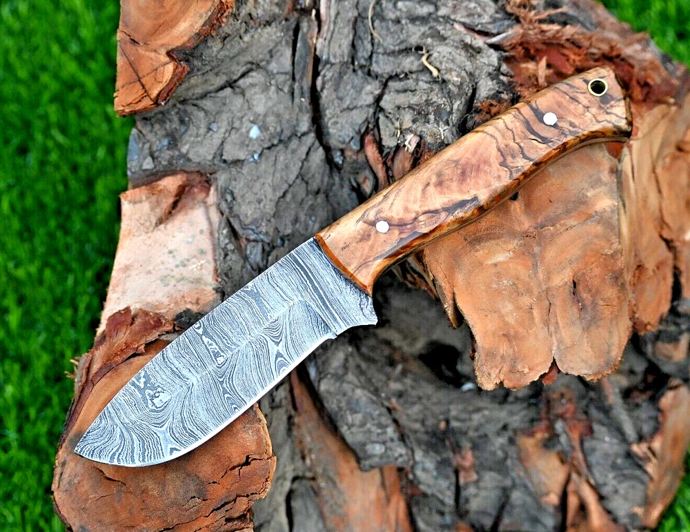 Handmade: Yes Type: SKINNER KNIFE, Boot, Bowie, Bowie Knife, Combat, Everyday Carry, Hunting, Survival, Throwing Tang: Hidden Dexterity: Ambidextrous Brand: M DAMASCUS Blade Type: Drop Point Original/Reproduction: Original Features: Sheath Included Blade Material: Damascus Steel Handle Material: WOOD HANDLE Blade Color: Gray Blade Edge: VERY SHARP Blade Length: Over 5in. Vintage: No