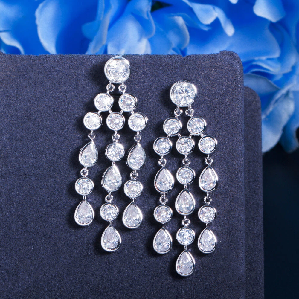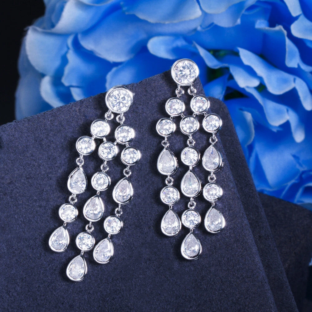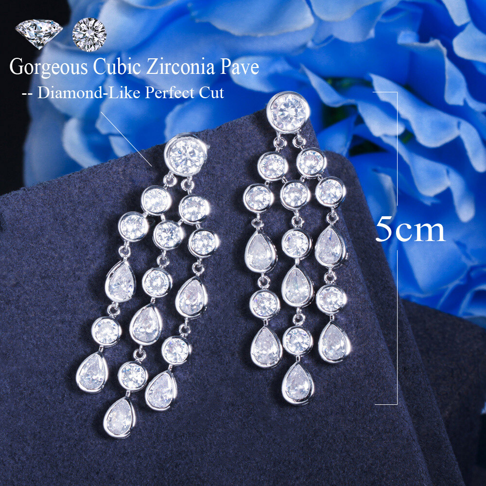 CZ Crystal Long Dangle Tassel Drop Chandelier Earrings Silver Plated Ear Jewelry Specifications: Condition: New Material: Cubic Zirconia Color : White Size: 5 cm Metal Color :Silver Plated Features: 1. CZ Stone Material - Top Level Cubic Zirconia. Excellent Cut Simulated Diamond. Enjoy the dazzling sparkle from cubic zirconia Hoop earrings. 2. These Fashion Large Hoop Earrings are Suitable for Almost all of Sensitive Ears. These are the top Cubic Zircon Round Earrings for Daily Wear. 3. Suitable for Various Occasions: Ideal for Wedding, Prom, Pageant, Parties, Homecoming, Black Tie Formal Affairs, Holidays , Birthday , Christmas , Valentine's Day , Anniversary and Special Occasions. 4. A Perfect Jewelry Gift for Women , Girls , Mother , Wife , Lover , Fiancee , Friends , Bride , Bridesmaid . Package Includes: 1 Pair Earrings Payment Delivery details Terms of sales & Feedbacks About us & Contact us Our commitment Payment 1. We only ship item to your Ebay verified address . Please Make sure all address are the same 2.Please leave note in ebay when making the payment if you have any special request (colors/size). Delivery details We only send items to the registered eBay address.Items will be shipped within 2 business days from the date payment is received (not include public holiday and weekend) . As per eBay regulations, import duties, taxes, and customs charges are the buyer's responsibility. Please check with your country's customs office to determine what these additional costs may be prior to bidding or buying. Terms of sales & Feedbacks After-Sale Please contact us to request a return/replace/refund authorization .It will be best if you use ebay message to contact me. 1, Return and replacement request is available only the requests within 30 days after parcel received. 2, Returning the item as the same condition as received. Situation and solution Defectives ---Please contact us and provide a photo of the defective part. After situation confirmed,we will offer you refund/return/replacement according to the situation Not as Described ---Please contact us and provide a photo of the wrong part. After situation confirmed,we will offer you refund/return/replacement according to the situation Not Received ---Please undersatnding shipping on the way was out of our control ,because of the busy shipping season,holidays,bad weather or force majeure etc. It may be delay for days. But if it took too much time and not deliveried, Please message me, I will offer you solution for it. Feedbacks 1. If you are satisfied with our service, please leave us a + Good feedback and rate the details of the transaction (DSR) with a. . When you rate the shipping time part please take international transit into consideration.] Your recognition will make us more confident to develop business and serve you better. 2. Please contact us first if you have any problem with the items,we will solve it in time ! 3. Please do not leave Neutral or Negative Feedback before you contact us, Thanks For Your Business ! About us & Contact us Working time: Chinese time(Eastern eight zones):Monday to Friday ,9:00 am to 6:00 pm. We do not work on chinese legal holiday. Message reply: We will reply all messages within 24 hours of business time. Please contact us via ebay message, it was the best way for both you and us to solve problems. Any questions or anything you need, please feel free to contact us. Our commitment 1.Wholesale price will be offered to you if you need in bulk ! 2.About Size