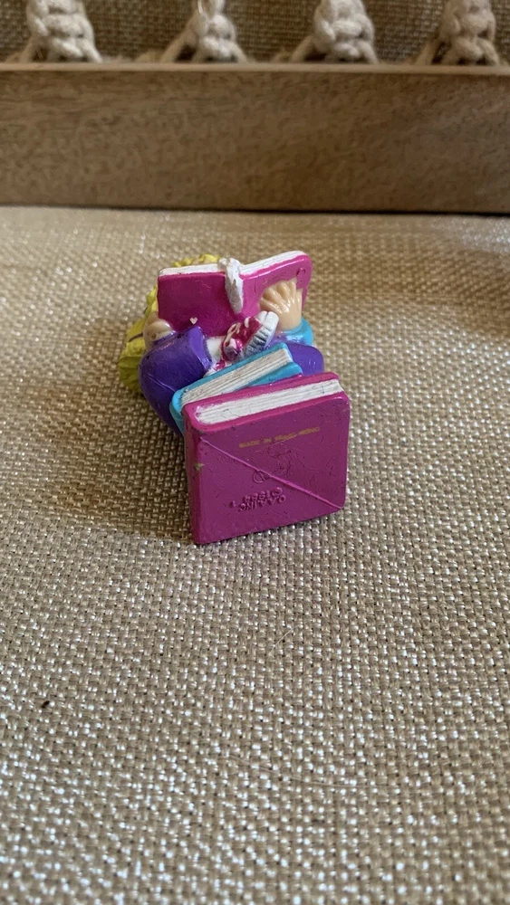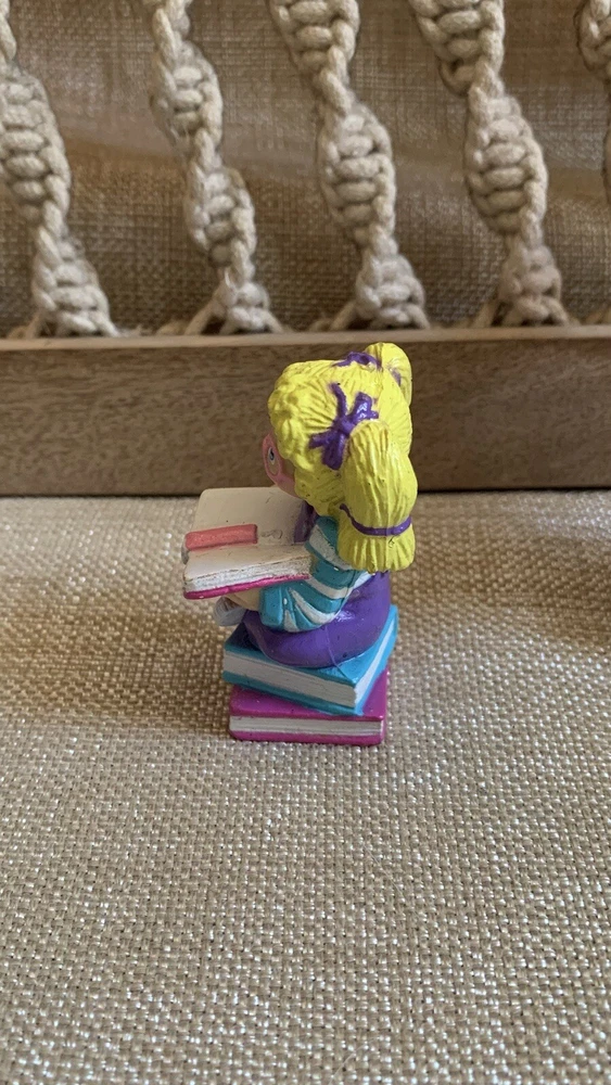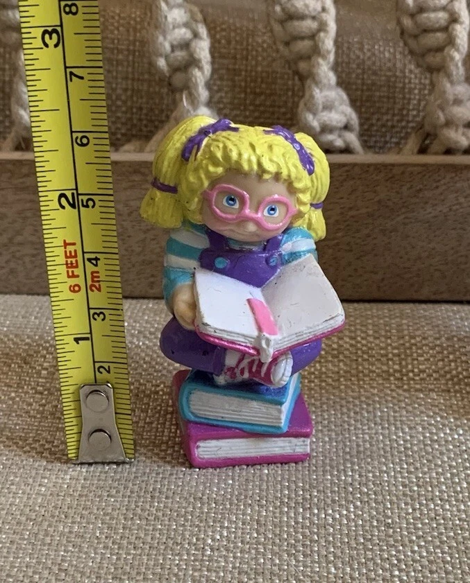 The Cabbage Patch Kids PVC Figure is a vintage collectible from 1984, featuring a girl doll with curly blonde hair, blue eyes, and a light complexion. This miniature figurine depicts the doll sitting on books while wearing pink glasses, showcasing a nerdy look. The item is an original Cabbage Patch Kids product, made of rubber and part of the CPK franchise, ideal for collectors of vintage dolls and nostalgic memorabilia. I'm not a collector or expert so please see all photos for condition and let me know if you have any questions or need any more photographs. Due to the reason of light and the display, you can see the picture may have a slight color difference, this is inevitable, please understand. Please review images to make your judgment on cosmetic condition which I believe is a matter of personal opinion. You will get what you see. The photos will overrule the listing title or descriptions if there is any discrepancy.