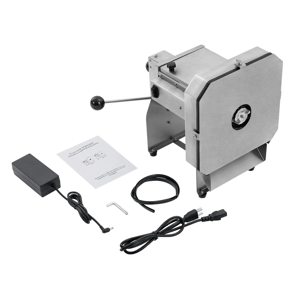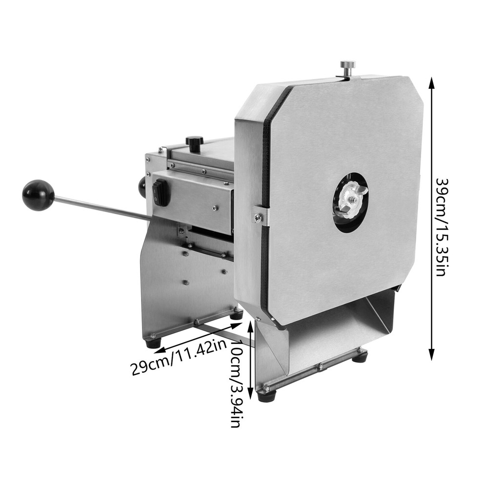 Cabbage Shredder Silver Commercial Potato Slicer Fruit Vegetable Slicer Machine Description Equipped with sharp blades, an adjustable slicing thickness function, and a high-efficiency motor, this fruit and vegetable slicer can quickly and accurately slice most fruits and vegetables into uniform slices, greatly enhancing your kitchen work efficiency. In addition, it also supports manual operation, which ensures that you can continue to enjoy delicious flavors even in the event of a power outage, making life in the kitchen more flexible and hassle-free. Key Features Made to Last: The high-quality stainless steel, 5Cr, and steel can protect the product from corrosion, rust, and deformation, keeping the product sturdy and durable. High Efficiency: The powerful copper wire motor, combined with stainless steel counterweight disc, wear-resistant bearings, and 5Cr sharp blades, provide the product with a high cutting efficiency that reaches up to 330.69 lbs per hour and comprehensively solves the problems of uneven slices, greatly improving your kitchen working efficiency. User-friendly Design: Using the principle of leverage, you only need to press down on the labor-saving lever to push open the push plate and easily feed with one hand. The funnel-shaped discharge chute effectively collects the cut slices and prevents the slices from coming out of your container(not included). Electric& Manual Dual Use: The product offers both motorized and manual operation options, allowing you to use the product and slice with ease when the power is out. Adjustable Slicing Thickness: The product can be adjusted to cut different slice thicknesses (0-10mm) to meet your different needs. Easy to Clean: The smooth surface, simple structure, and removable blade allow you to easily clean the product. Easy to Operate: You simply turn the knob for adjusting the thickness, press down the lever for feeding, and press the switch to achieve automatic slicing. Buy with Confidence: We stand behind all our guests and look forward to assisting you with your purchase. It is our pleasure to answer your confusion and questions. The end of the story between us is not "we sell and you buy". Details Large Food Trough: It measures 9.84*4.33 inches and can hold more food. It also comes with a lid that prevents dust and other foreign objects from polluting the food. Protective Cover: The square bending guard and plastic protective strips can protect your hands from getting injuries. Sturdy Feet: They absorb vibrations and prevent sliding, allowing for more stable operation while avoiding scratching the countertop. Application The product can be widely used in beverage stores, restaurants, cafeterias, hotels, fruit stores, fast food restaurants, hot pot restaurants, milk tea shops, etc. to slice various vegetables and fruits such as potatoes, radishes, lemons, and lotus roots. Specifications Color: Silver Material: Stainless Steel, 5Cr, Steel Process: Heat Treatment Mount Type: Table Standing Operation Mode: Automatic or Manual Motor Type: Copper Wire DC Motor Plug Type: US Standard Voltage: 110V Power: 96W Slicing Efficiency: 150kg/330.69lbs/h Food Trough Capacity: 25*11cm/9.84*4.33in Adjustable Slicing Thickness: 0-10mm/0-0.4in Machine Body Thickness: 1.5mm/0.06in Product Overall Height: 39cm/15.35in Packaging Size: 45*43.6*38cm/17.72*17.17*14.96in Gross Weight: 10kg/22.05lbs Net Weight: 8.8kg/19.4lbs Package Included 1* Electric Vegetable Slicer 1* Adapter 1* Power Cord 1* English Manual Other Needed Accessories Notes Please check the size carefully before ordering. Please note that this machine is only for hard food slices. Please do not put your hands inside the cutter guard/food trough while the machine is running to avoid injury. Please beware of electrical safety hazards, use this product in accordance with the product instructions, and keep it out of the reach of children daily. Please allow the slight color difference caused by the shooting light and 1-3cm error due to manual measurement, and make sure you do not mind before you order. Payment Delivery details Terms of sales About us Contact us Payment We accept ebay payment 。 Fees such as import duties, taxes are not included in the item price or shipping costs. These charges are the buyer's responsibility. Delivery details Shipping: 2-9 working days to: USA Terms of sales We maintain high standards of excellence and strive for hundred percent customer satisfaction. Feedback is very important to us. We hope that you contact us immediately before you give neutral or negative feedback, so that we can address your concerns. It is impossible to address issues if we do not know about them! About us Your satis faction is our ultimate goal. We work hard to earn your trust and future business. Our certified technicians have tested each item before shipping. The unit comes with 1 year limited warranty on all manufacturing defects. a) If you receive a defective item, you may return it or ask for a discount. Please contact us within 14 days after you receive the package. b) What you returned must be intact and in its original packaging as re? u. Customer is responsible for shipping costs of the returned item. c) We will cover the cost of shipping back t with the shipping rate indicated in the registration page. We will send you a new unit or refund the full payment you paid. Thank you. Contact us Business Hour Business Hour: Monday To Friday: 8:30 AM to 5:00 PM (Beijing China time) Due to time zones, our reply to your questions may not be immediately. But within above working time, we will reply your email within 24 hours. If it's non-workdays, please kindly be patient and wait till Monday. Please contact us with ebay message. Please feel free to contact us if you have any questions. Monday To Friday: 8:30 AM to 5:00 PM (Beijing China time) Due to time zones, our reply to your questions may not be immediately. But within above working time, we will reply your email within 24 hours. I