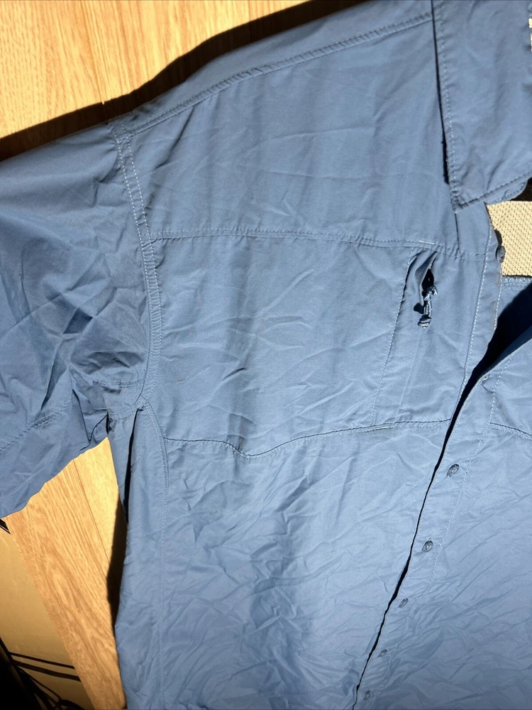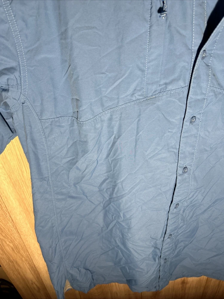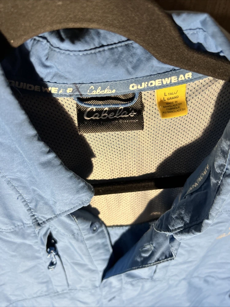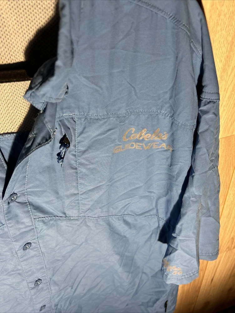 Introducing the Cabela's Guide Series Blue Short Sleeve Button Up UPF 50 Men's Large Tall Vented shirt, perfect for any occasion. This shirt features a solid pattern, short sleeves, and a collared neckline with a button closure. It is made by the well-known brand Cabela's and is designed for men in size LT. The shirt is blue in color and is not vintage. It is a regular fit shirt with no personalization and no graphic print. This button-up shirt is perfect for casual occasions and is made with high-quality materials to ensure durability. It is not handmade and is available in the Clothing, Shoes & Accessories, Men, Men's Clothing, Shirts, and Casual Button-Down Shirts categories. Get your hands on this stylish shirt today!