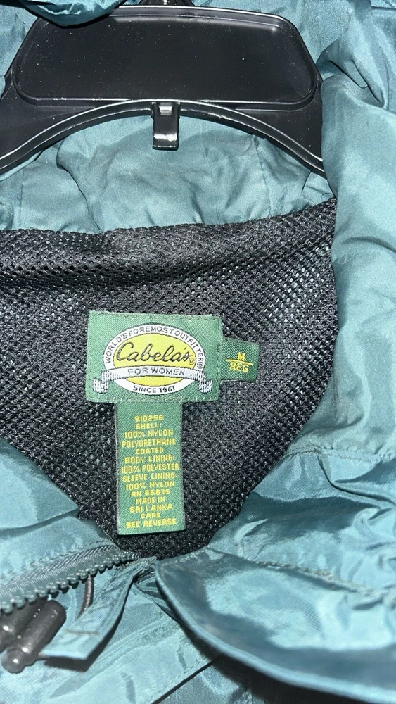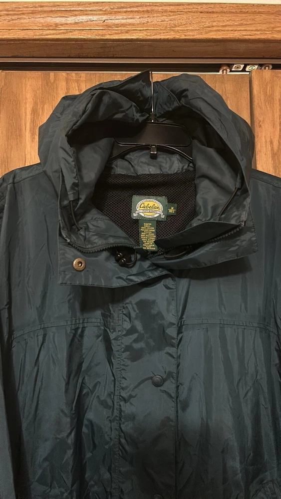 Embrace the great outdoors with this Cabela's Outdoor Gear Men's Size M Forest Packable Mesh Lined Windbreaker Jacket. Perfect for casual wear or workwear, this solid green nylon jacket features a zipper closure and accents, along with a hood and pockets for added convenience. The jacket is also packable and has a mesh lined lining made of polyester and nylon for extra comfort. Whether you're going for a walk in the park or working outdoors, this windbreaker is perfect for you. It is machine washable and made in Sri Lanka. The jacket is perfect for any occasion and has a variety of features, including being hooded, packable, and having pockets. Don't miss out on this great addition to your wardrobe!