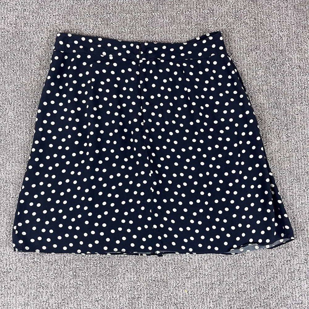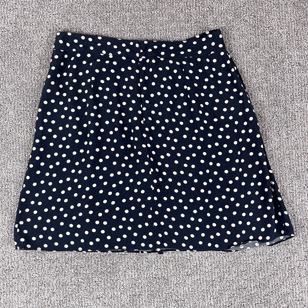 Cabi Womens Skirt 100% Rayon Style #627 Mini A Line Faux Wrap Polka Dot Zipper closure in back Cottagecore Cottage Excellent preowned condition Measurements in photos Size 4