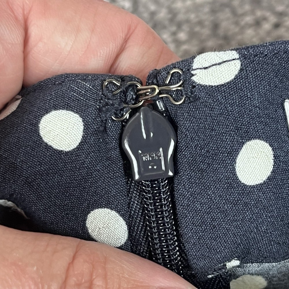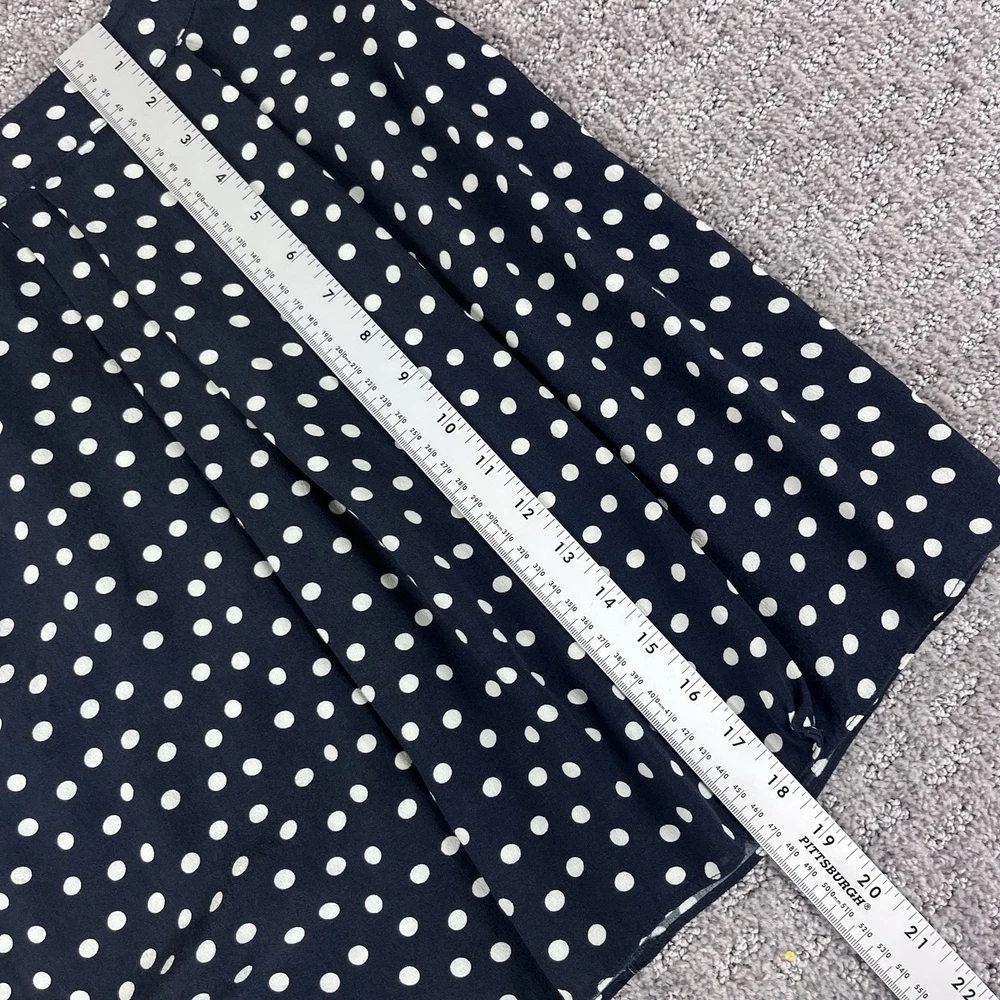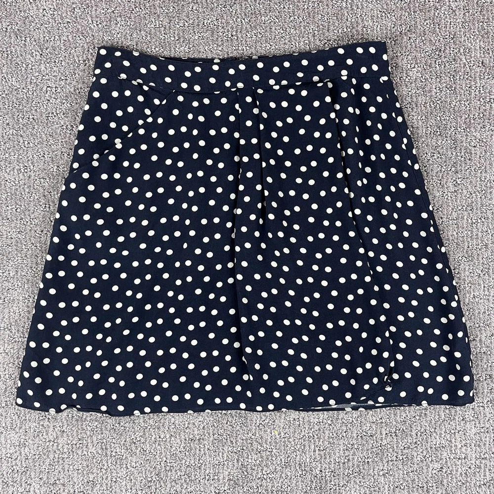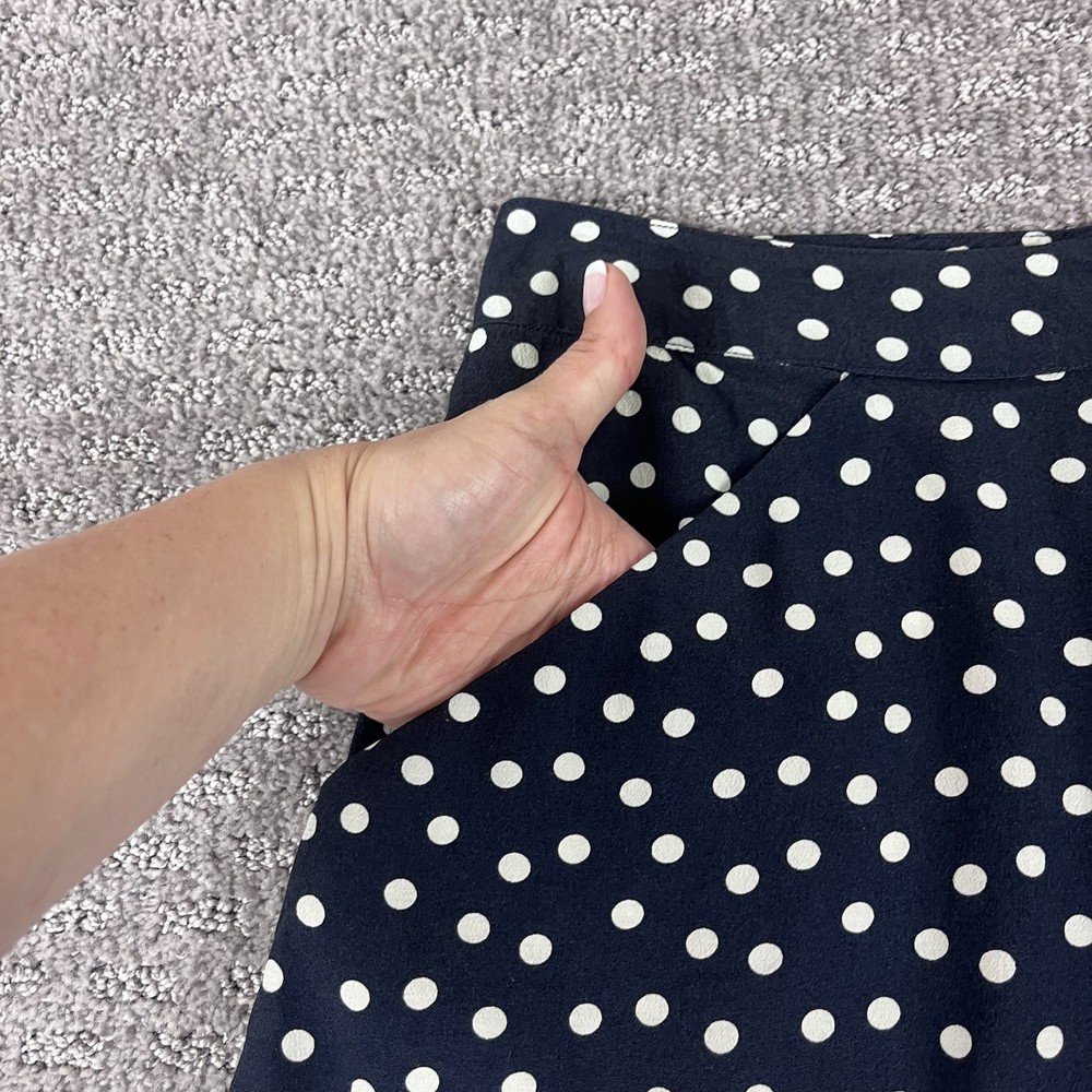 Personalize: No Size Type: Regular Season: Fall, Spring, Summer, Winter Pattern: Polka Dot Occasion: Business, Casual, Party/Cocktail Handmade: No Closure: Zip Type: Skirt Department: Women Rise: High Material: Rayon Style: Mini Size: 4 Brand: CAbi Vintage: No Seller Notes: “Excellent preowned condition” Features: Lightweight, Pockets Skirt Length: Short Color: Blue
